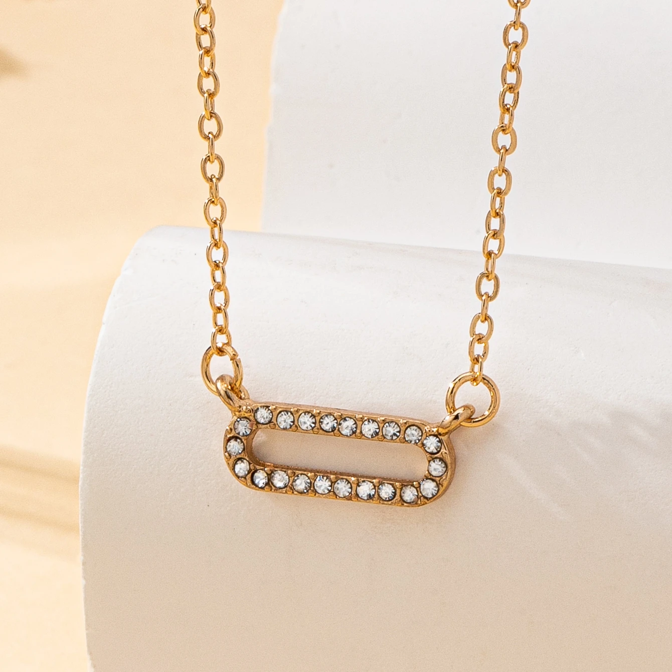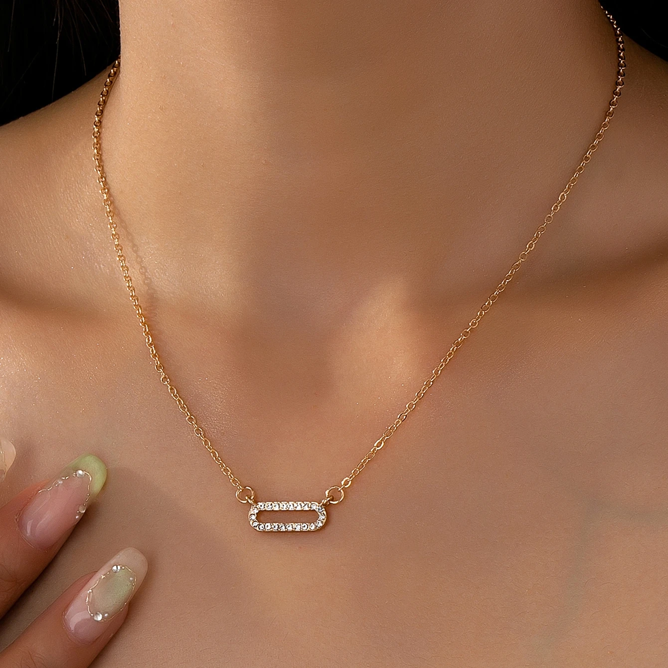 A Women's Necklace with Square Inlaid Glass, Simple and Fashionable, Suitable for Daily Wear and Vacation Wear