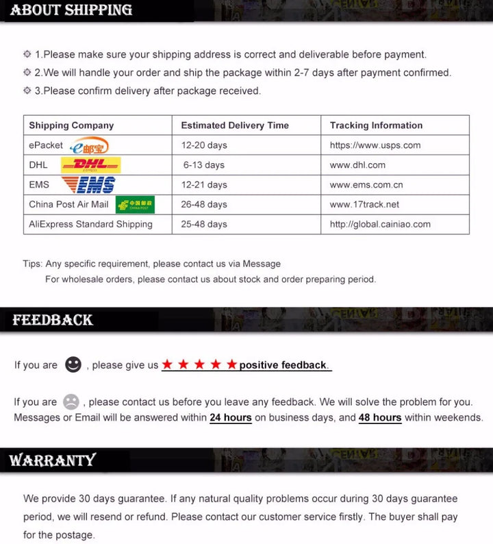 A3:Different places and logistics methods determine your timeliness, please consult customer service for details. |