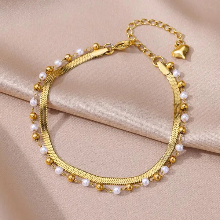 Anklets for Women Artificial Pearl Double Layer Stainless Steel Anklet Summer Beach Accessories Foot Leg Bracelets Jewelry Gifts