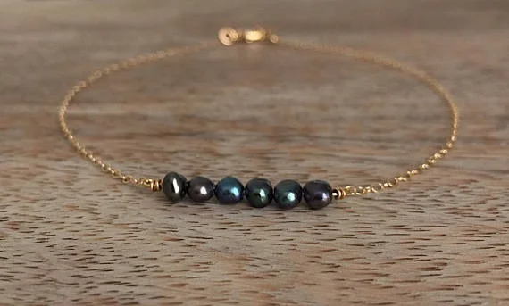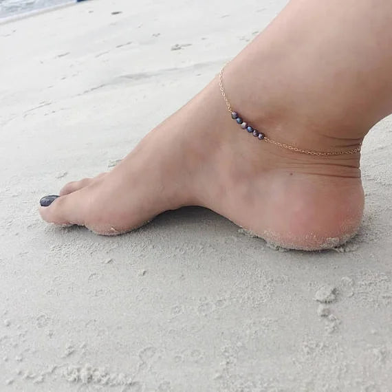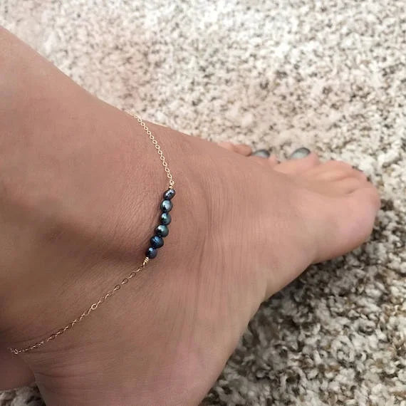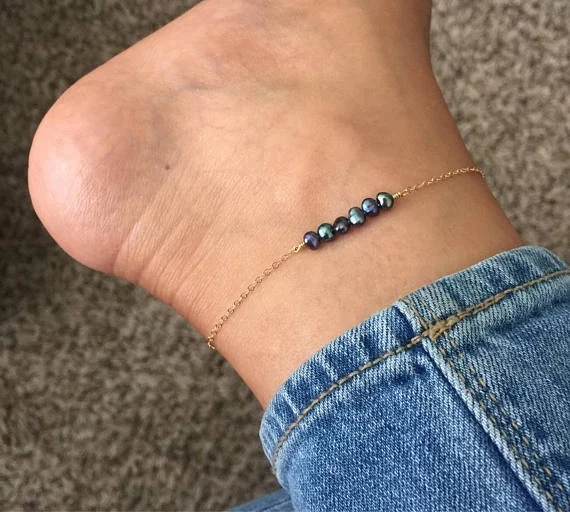 Black Pearl Anklet, , Peacock Pearl, Gold Ankle Bracelet, Tahitian COLOR Pearl, Dainty Anklet, Summer Anklet Beach Anklet