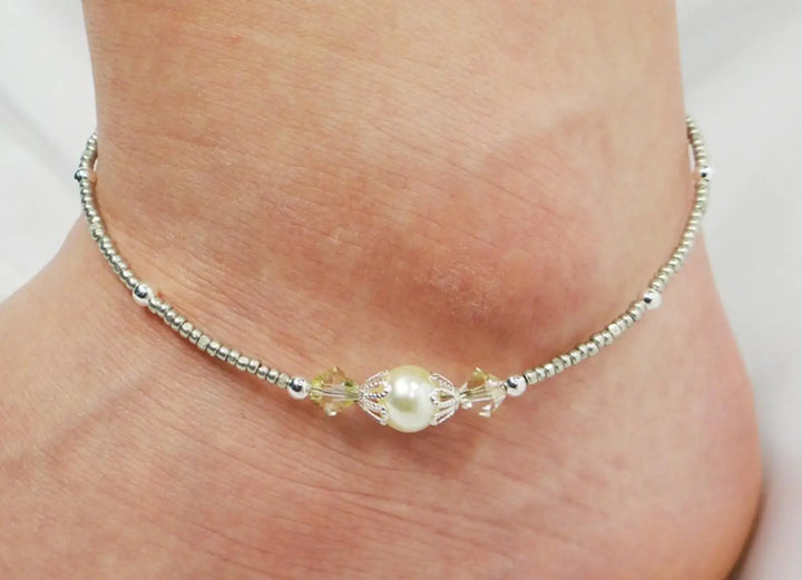 Beaded Anklet with Pearls, Colorful Pearl Anklet, Simple Anklet, Colourful Beach Anklet, Ankle Bracelet, Pearl Ankle Chain
