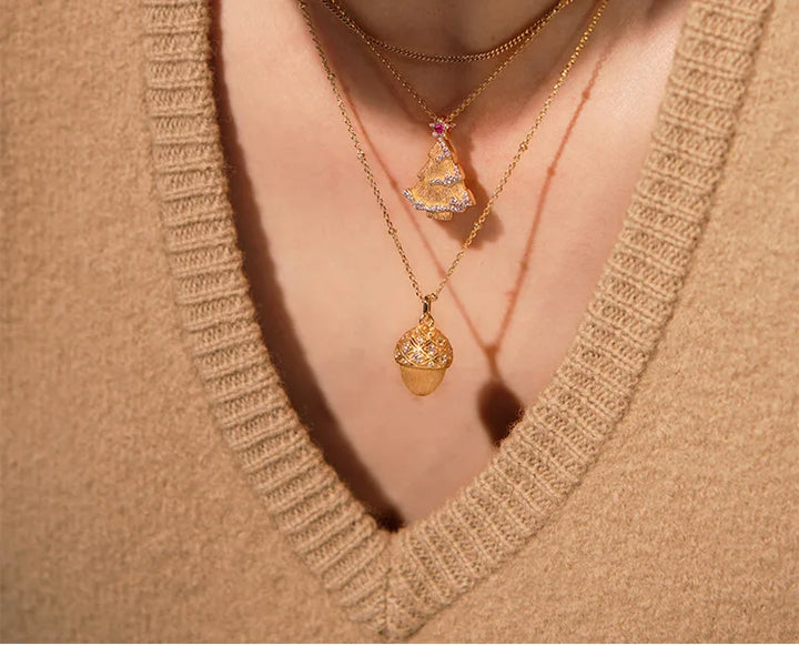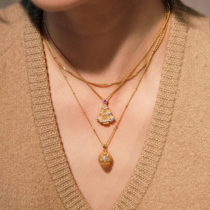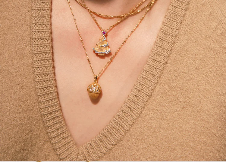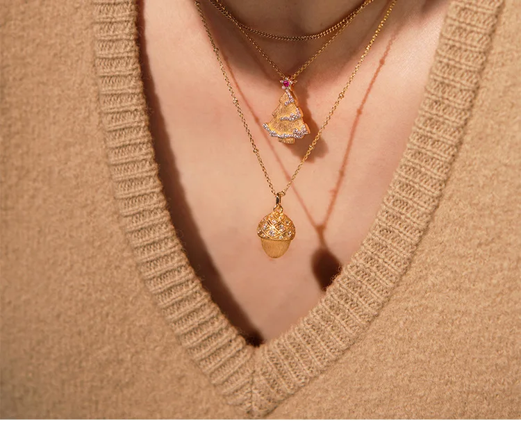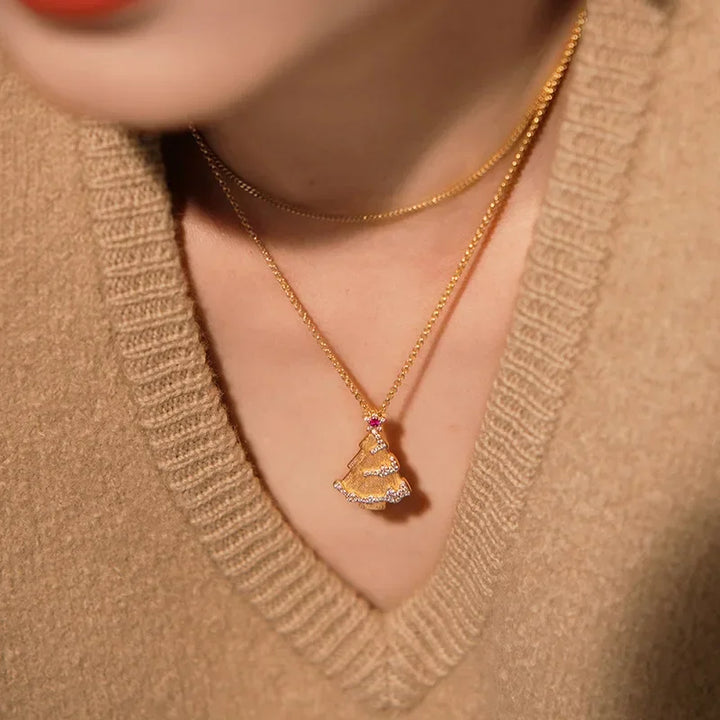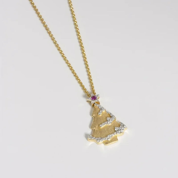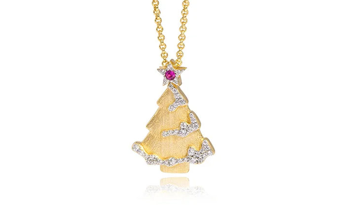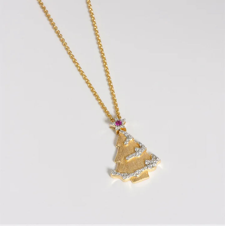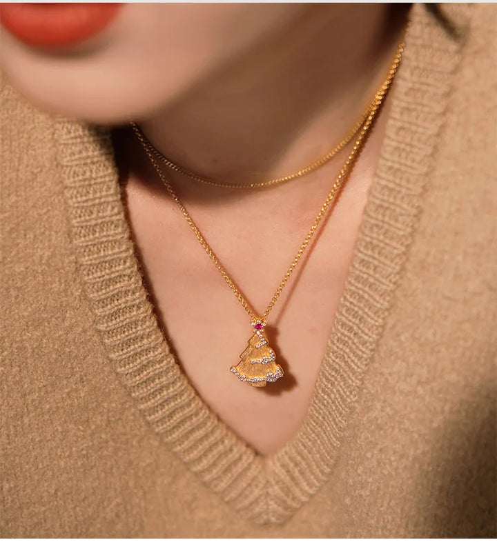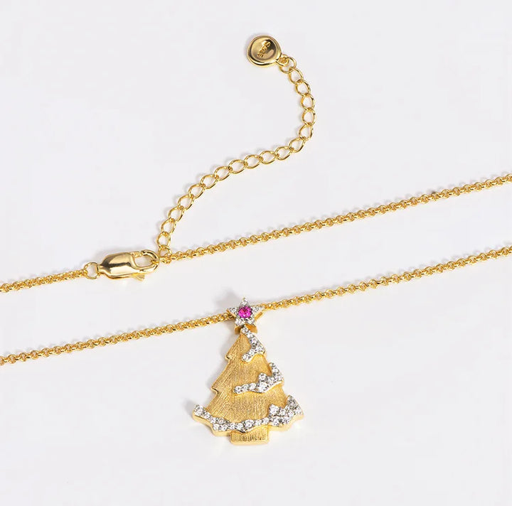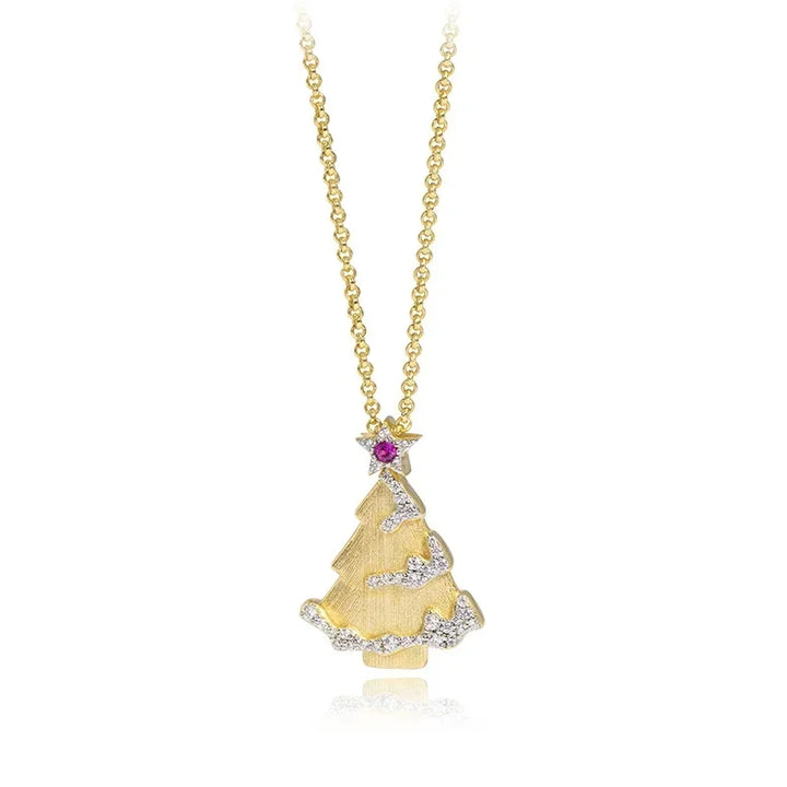 Bellux Fine Jewelry Christmas gift Christmas Tree Design Red Corundum Necklace 925 Silver Pendant New Year's Gift