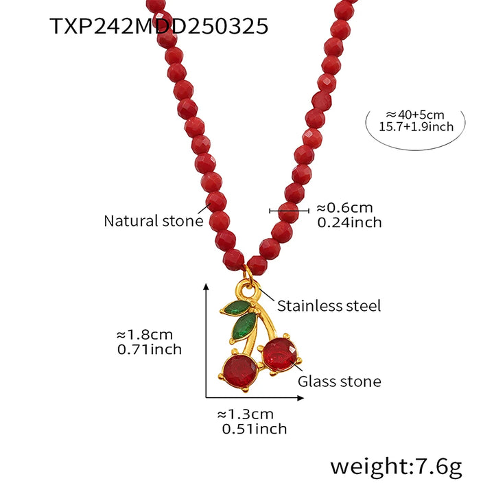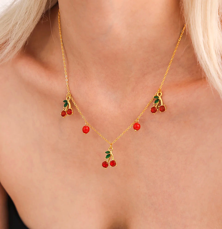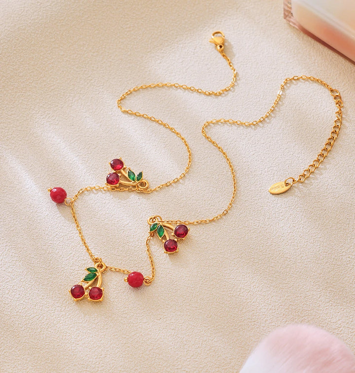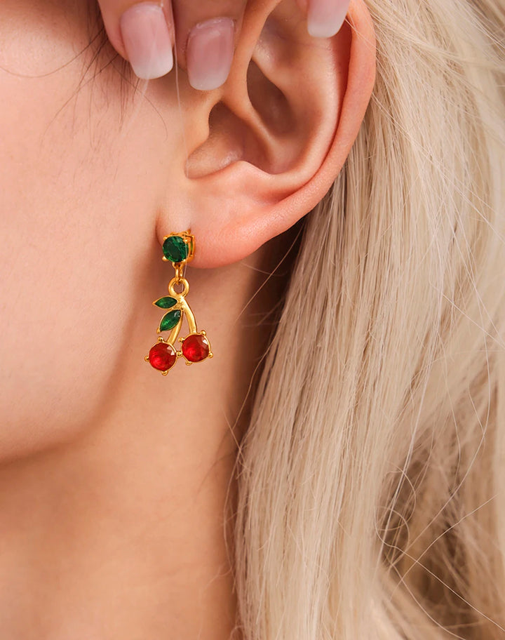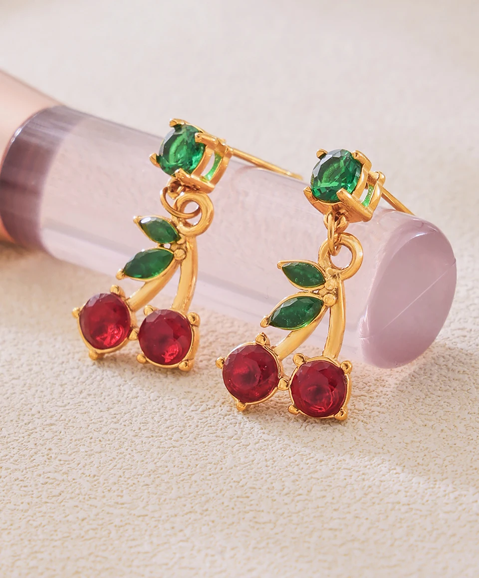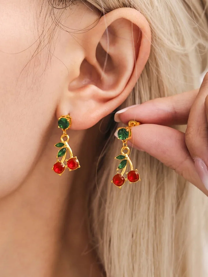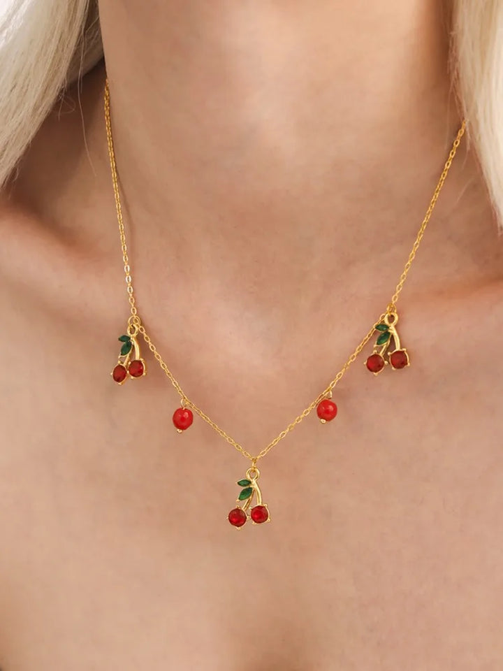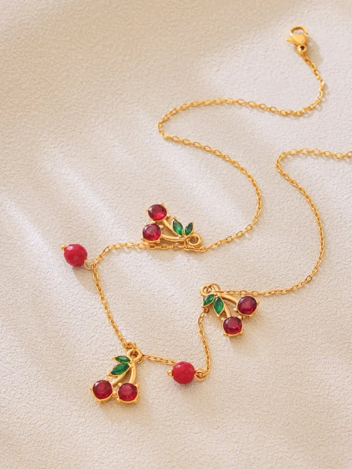 Cherry Charms Necklaces Matching Earrings For Women 18k Gold Plated Stainless Steel Women's Pendant Chain Necklace Stud Earring