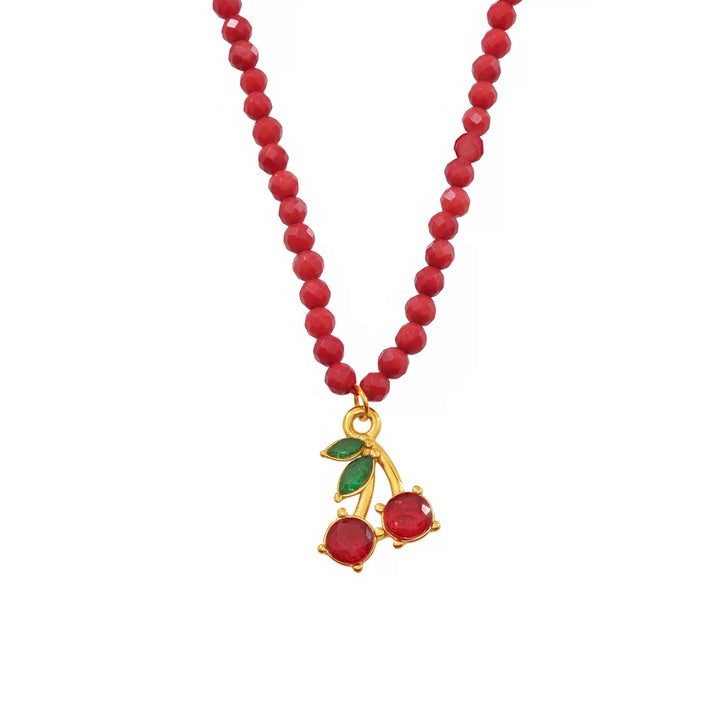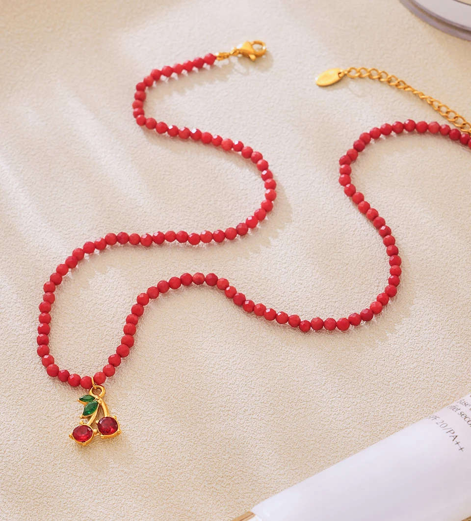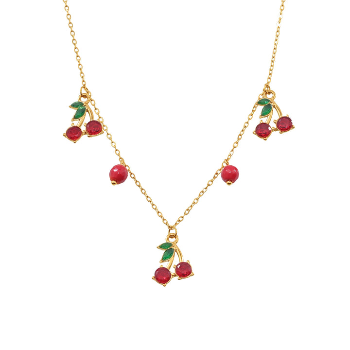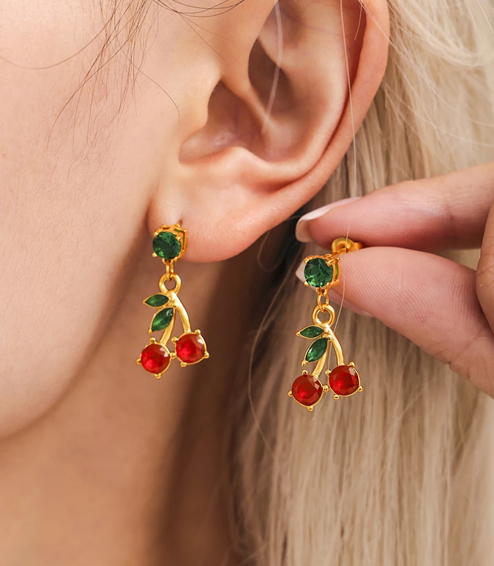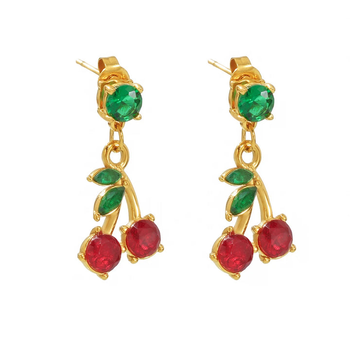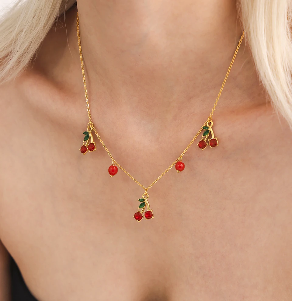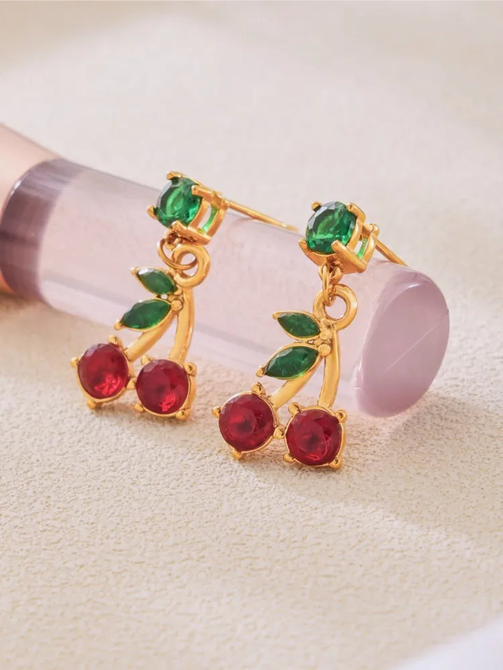 Cherry Charms Necklaces Matching Earrings For Women 18k Gold Plated Stainless Steel Women's Pendant Chain Necklace Stud Earring