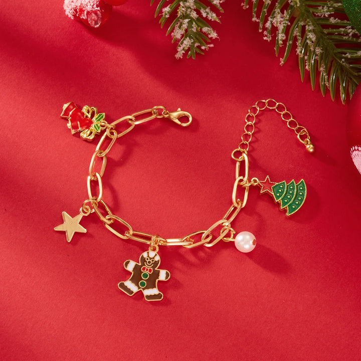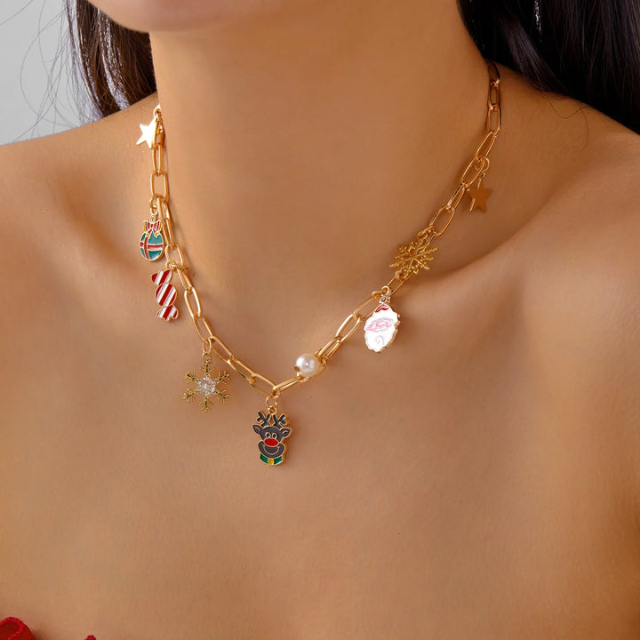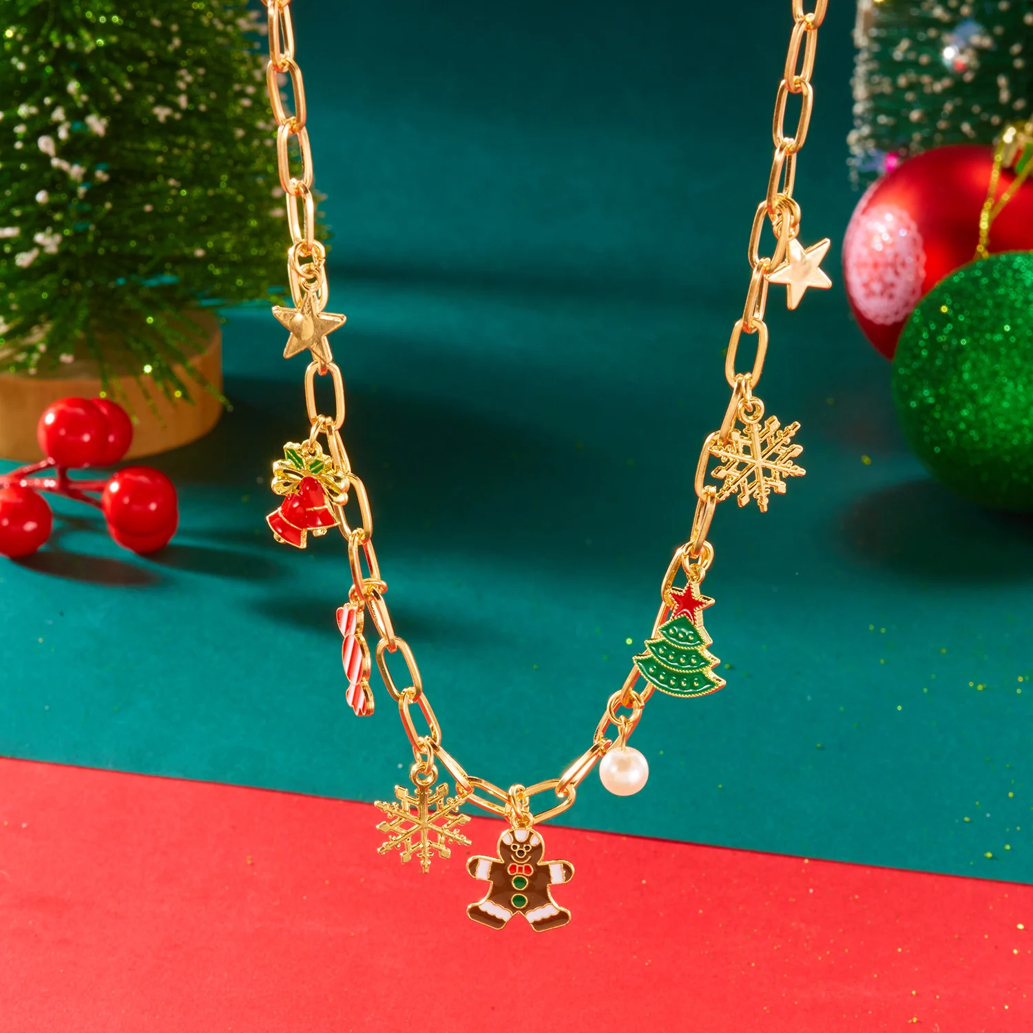 Christmas Bell Candy Snowflake Christmas Tree Gingerbread Man Pendant Necklace for Women New Year Festival Holiday Party Jewelry