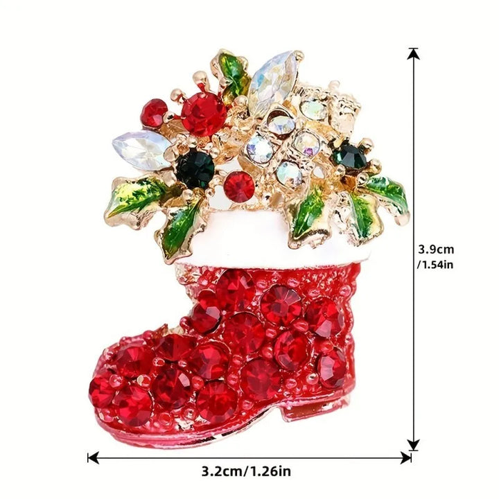 Christmas Brooch Women's Pin Suit Accessories Jewel Crystal Cute Christmas Boot Bell Brooches,Holiday Season Gifts.