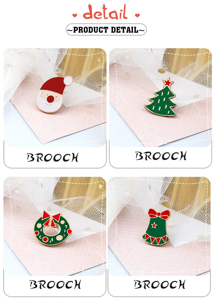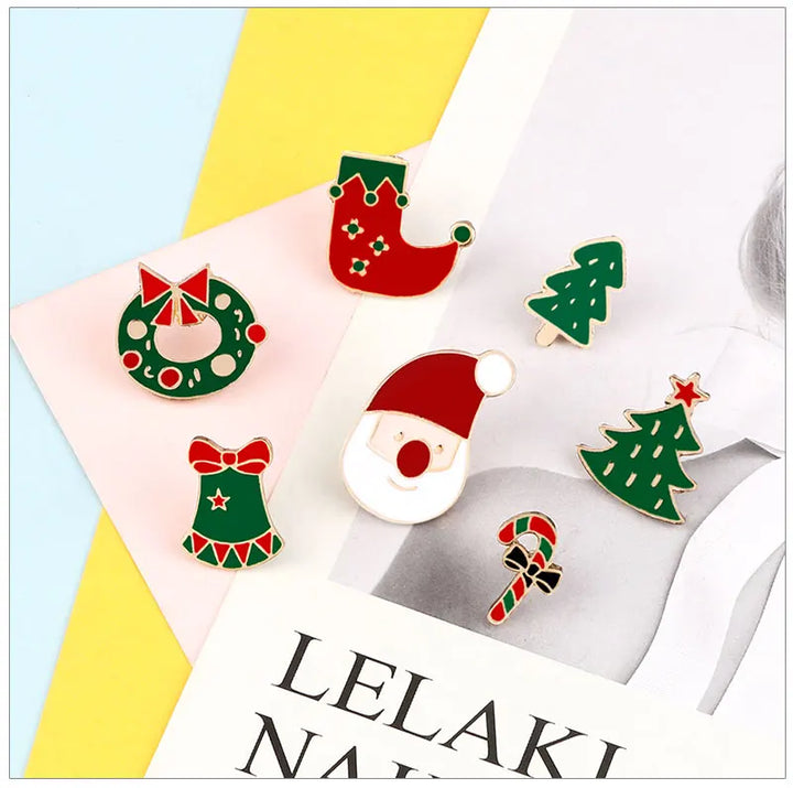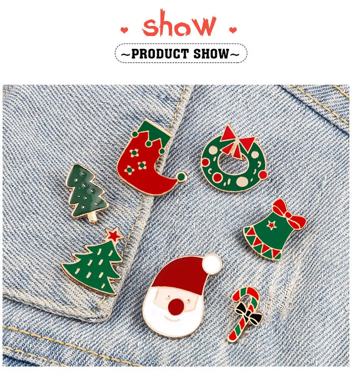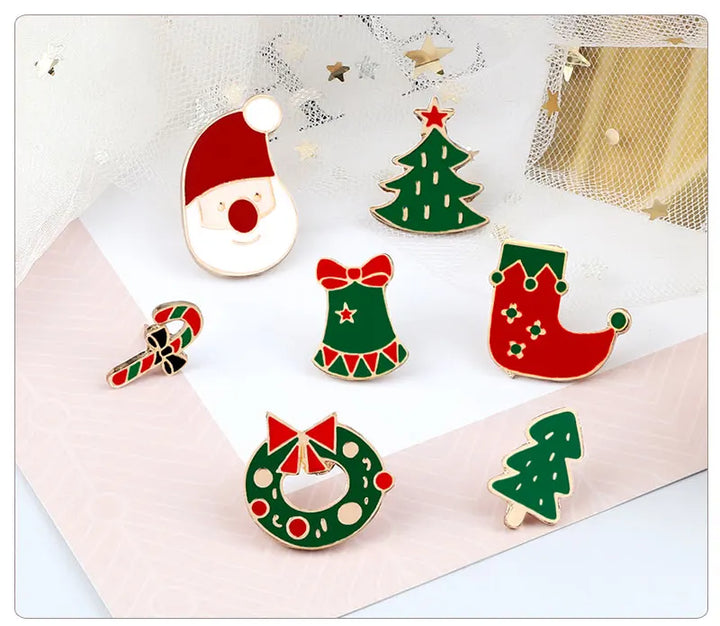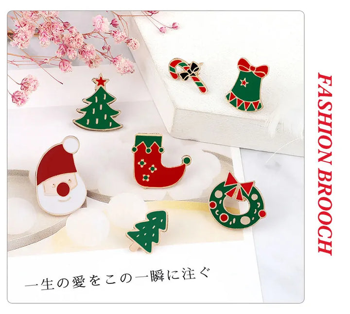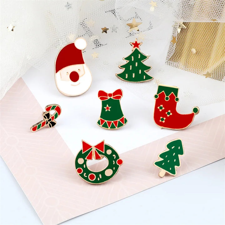Creative Merry Christmas Brooches Cartoon Santa Claus Wreath Tree Candy Sock Bells Enamel Lapel Pin Badge Jewelry New Year Gifts