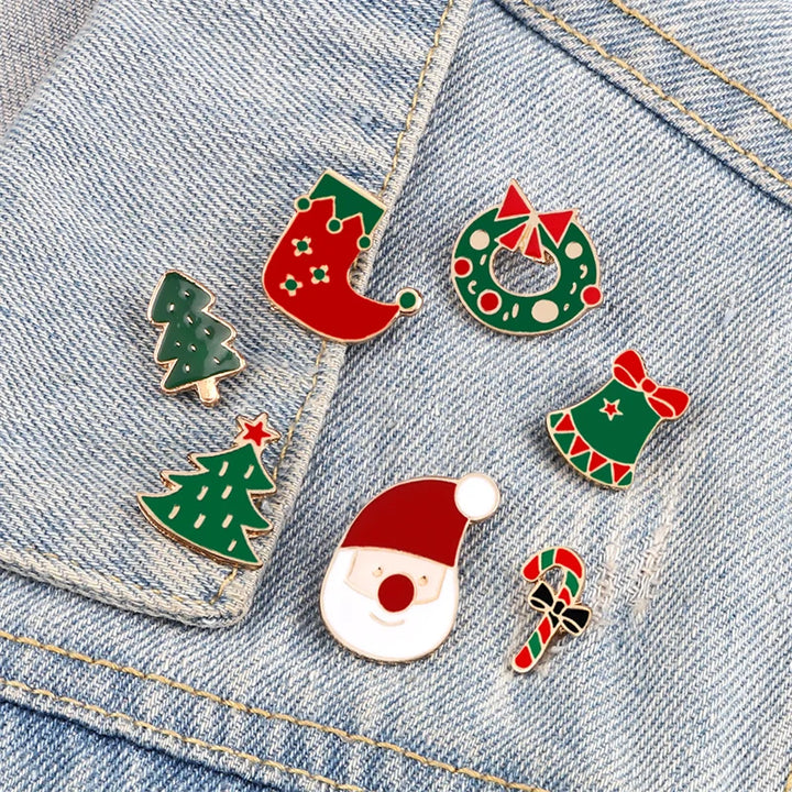 Christmas Enamel Santa Claus Wreath Tree Candy Sock Bells Enamel Lapel Pin Banquet Party Backpack Gifts Jewelry Accessories