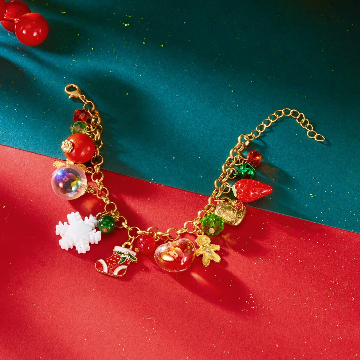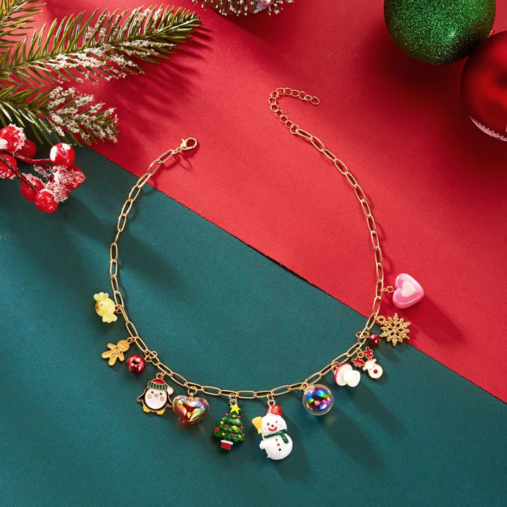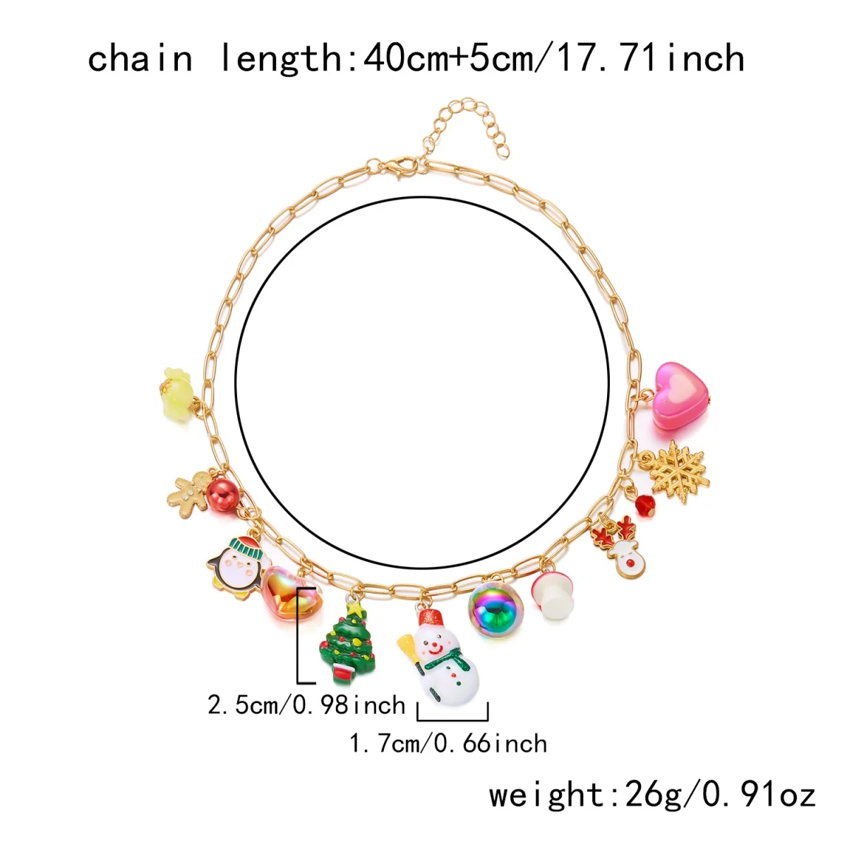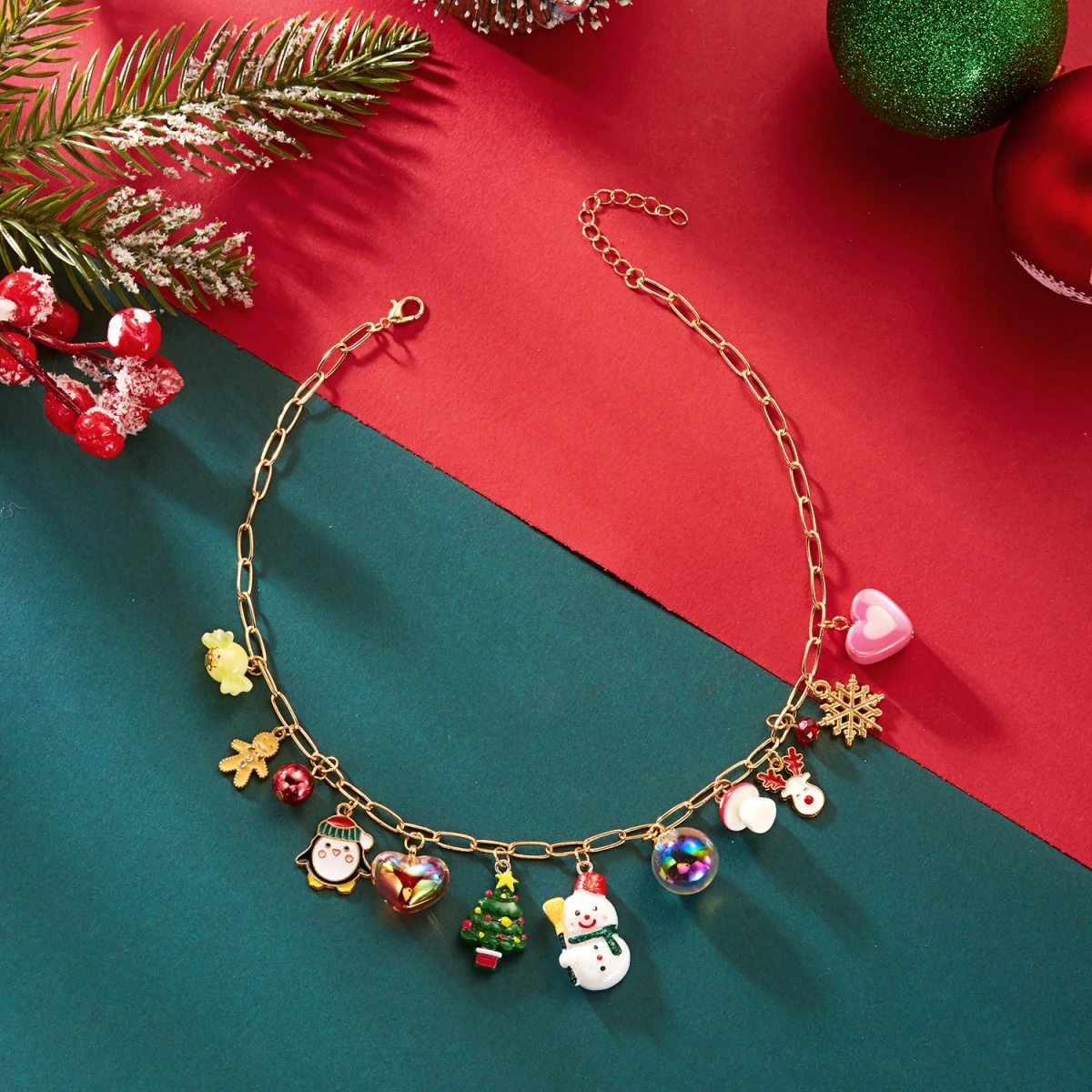 Christmas Holiday Jewelry Set Snowflake Gingerbread Sock Snowman Tree Resin Heart Strawberry Necklace Bracelet Set For Women Men