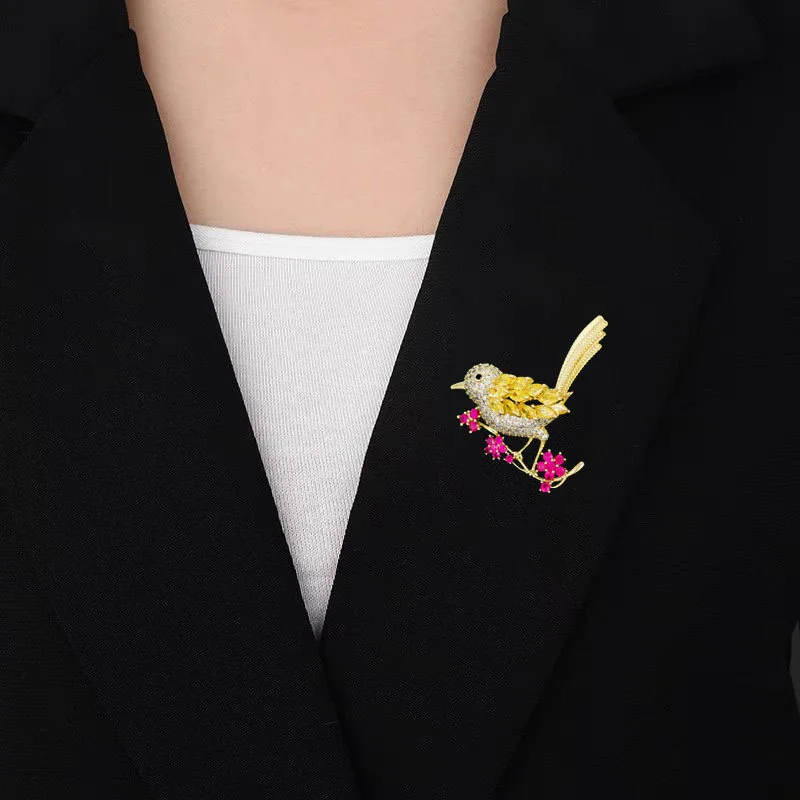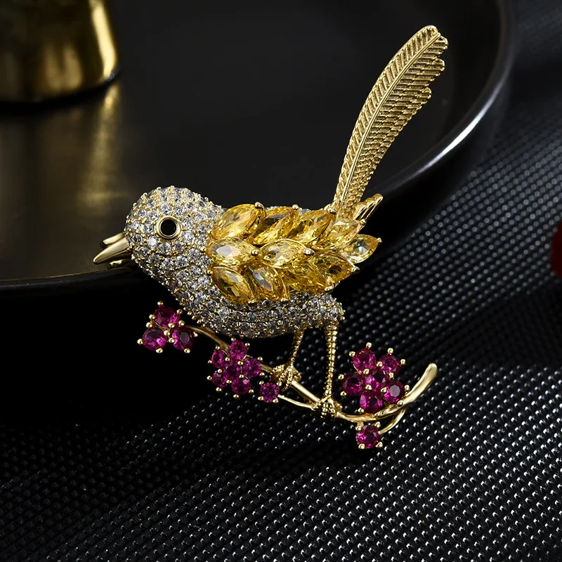Colorful Rhinestone Auspicious Magpie Bird Brooches for Women Good Luck Badges Crystal Chinese Style Party Brooch Pins Gift