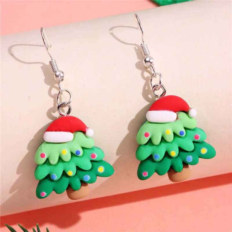 Cute Colorful Christmas Tree Earrings Fashion Resin Christmas Earrings For Girls Xmas Party Jewelry