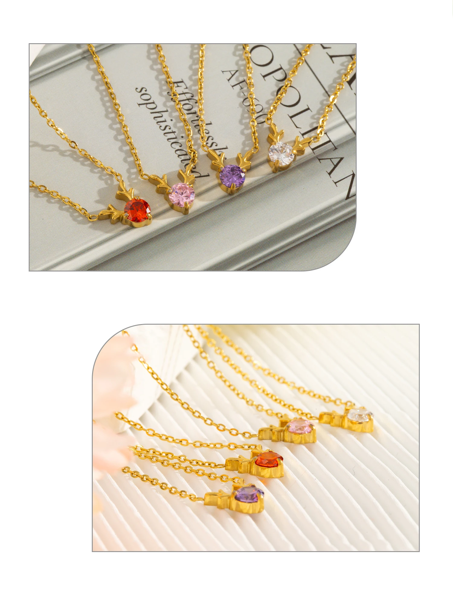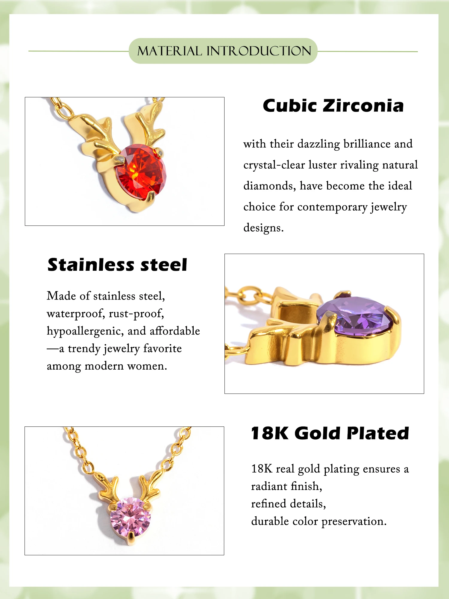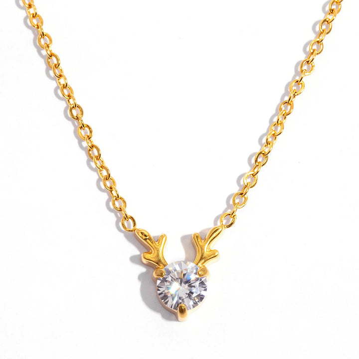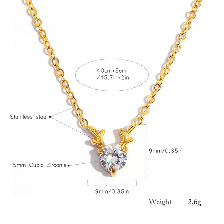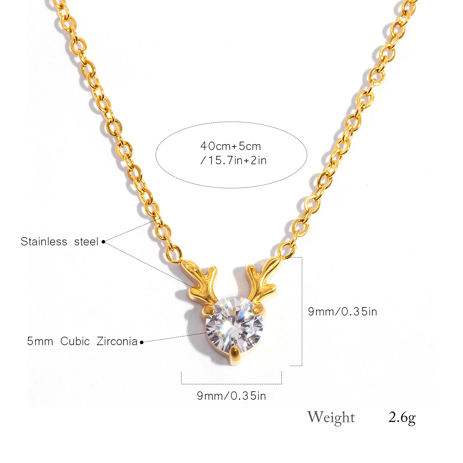 Deer Necklace for Women, Small Antler with CZ, 18K Gold Plated Stainless Steel Hypoallergenic Minimalist Dainty Jewelry Gift