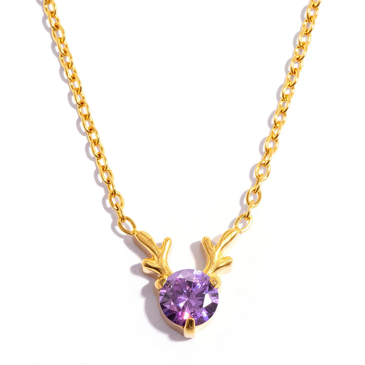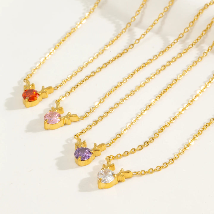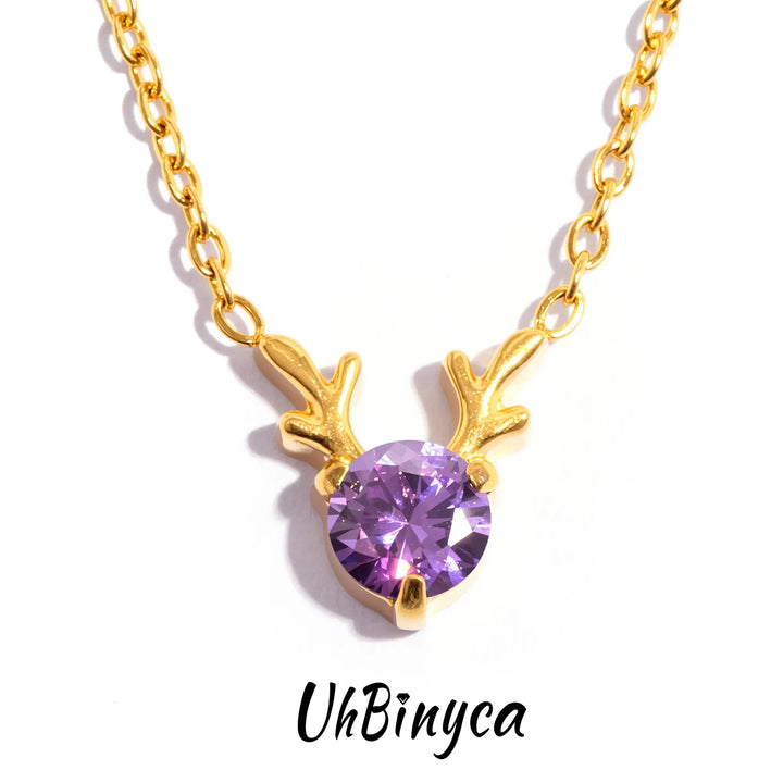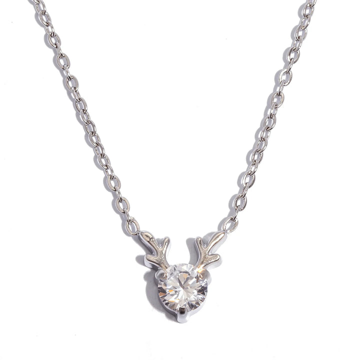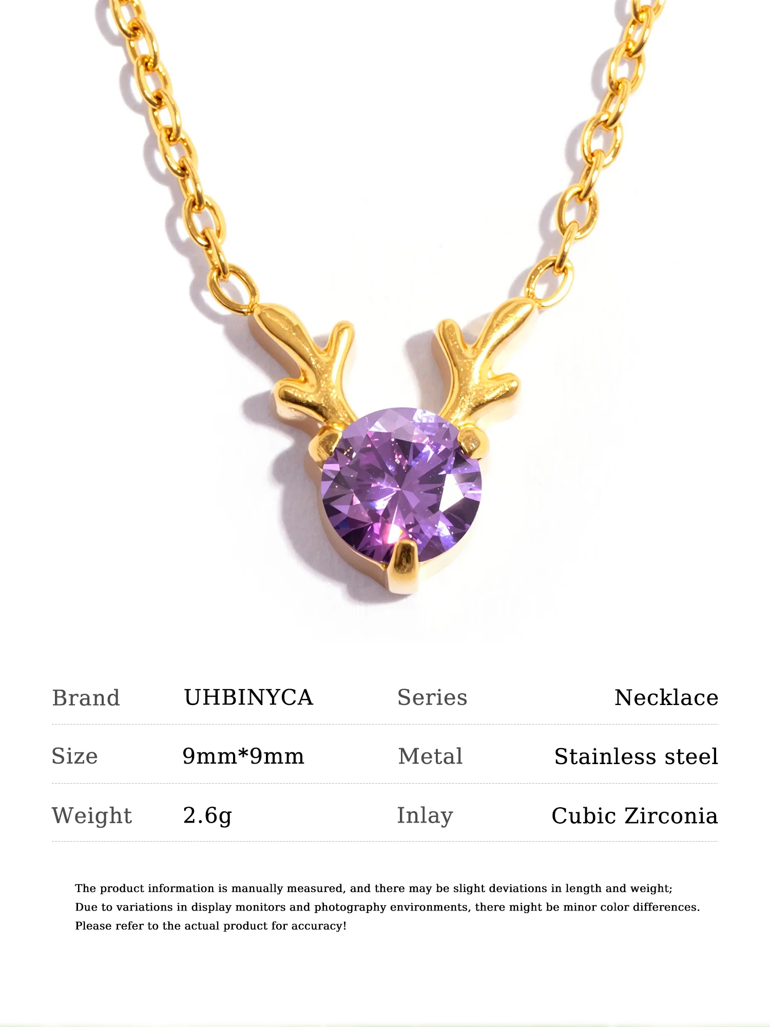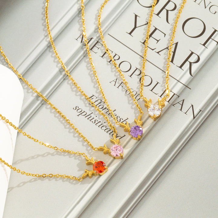 Deer Necklace for Women, Small Antler with CZ, 18K Gold Plated Stainless Steel Hypoallergenic Minimalist Dainty Jewelry Gift