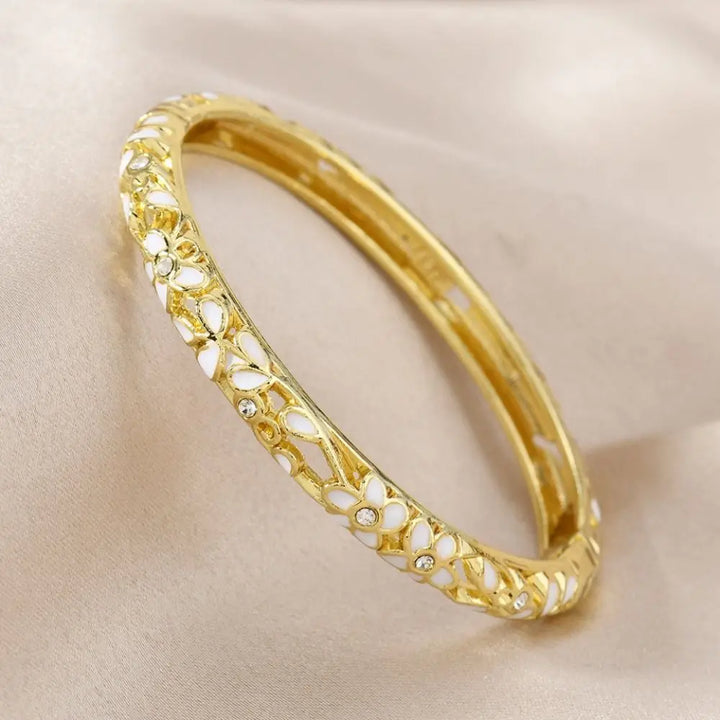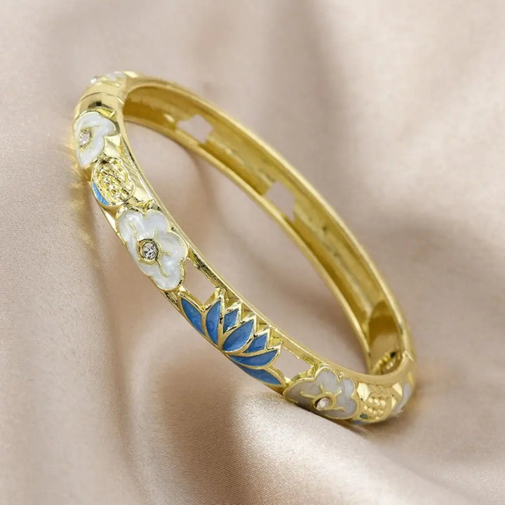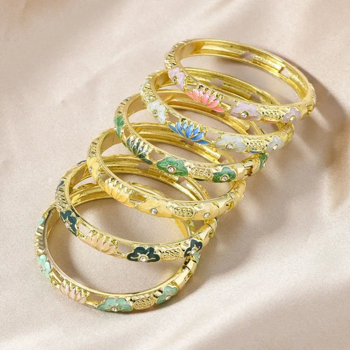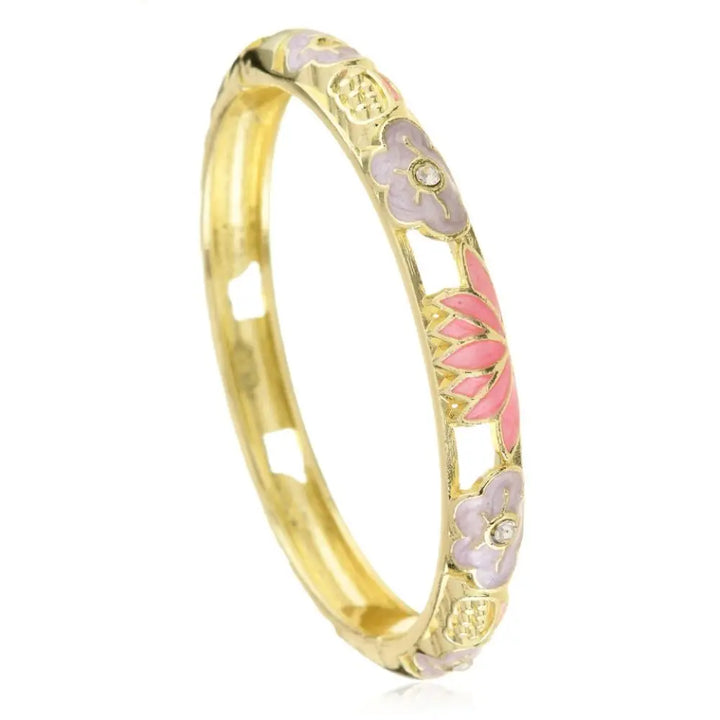 Double Bangle Vintage Cloisonne Bangle Traditional Chinese Hollow Out Flower Bangle Vintage Ethnic Women's Hand Bracelet
