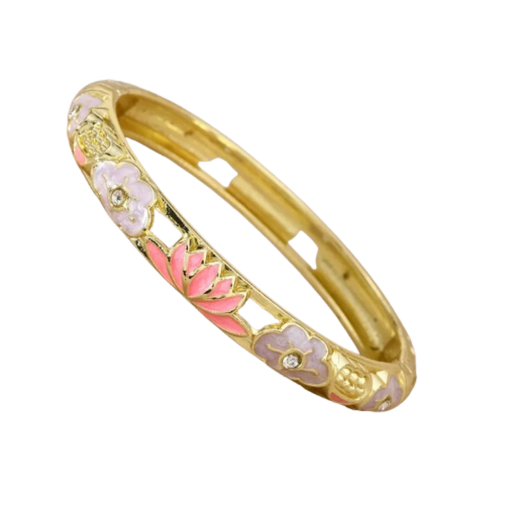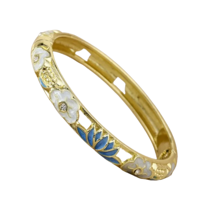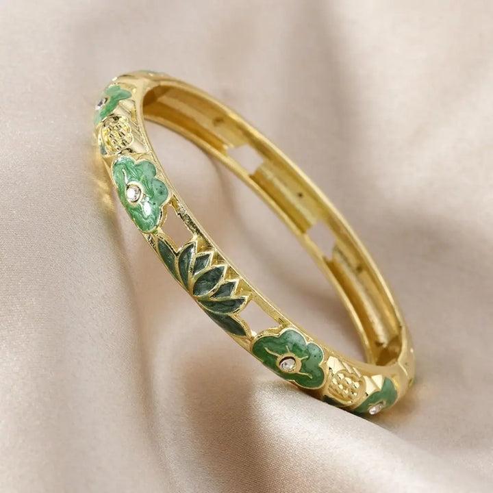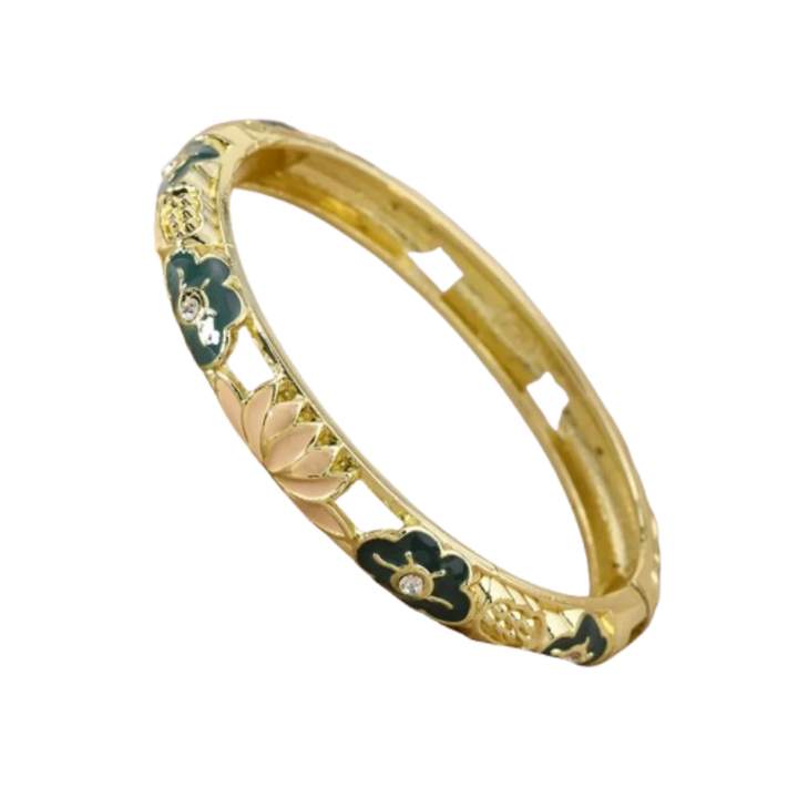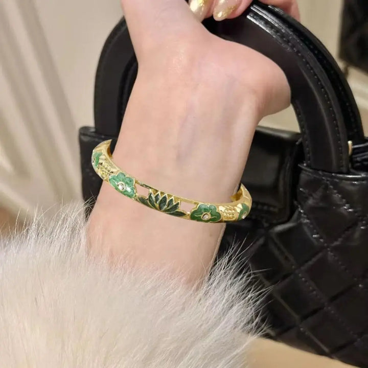 Hematite Shaping Bracelet Magnetic Bracelet for Relief Handcrafted Vintage Cloisonne Bangle with Engraved Floral Enamel