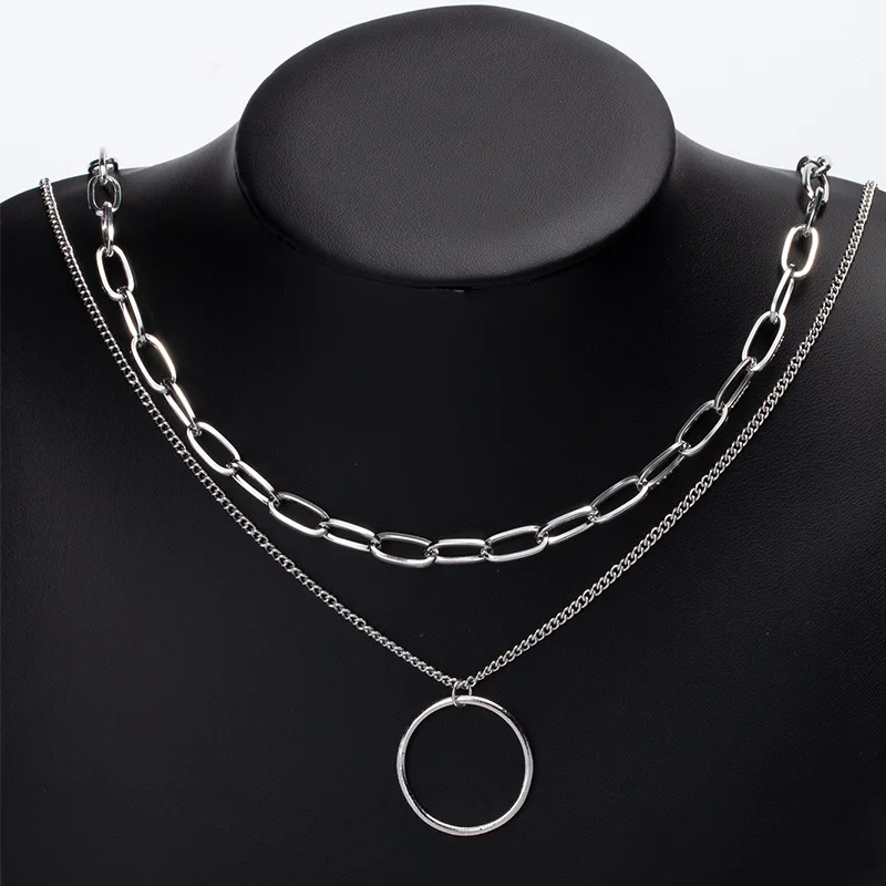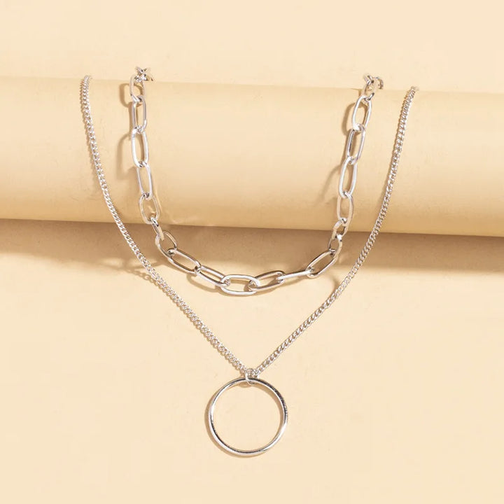 Double Layered Necklace Circle Pendant Jewelry Fashion Neck Chain Metal Choker Personalized Clavicle Chain