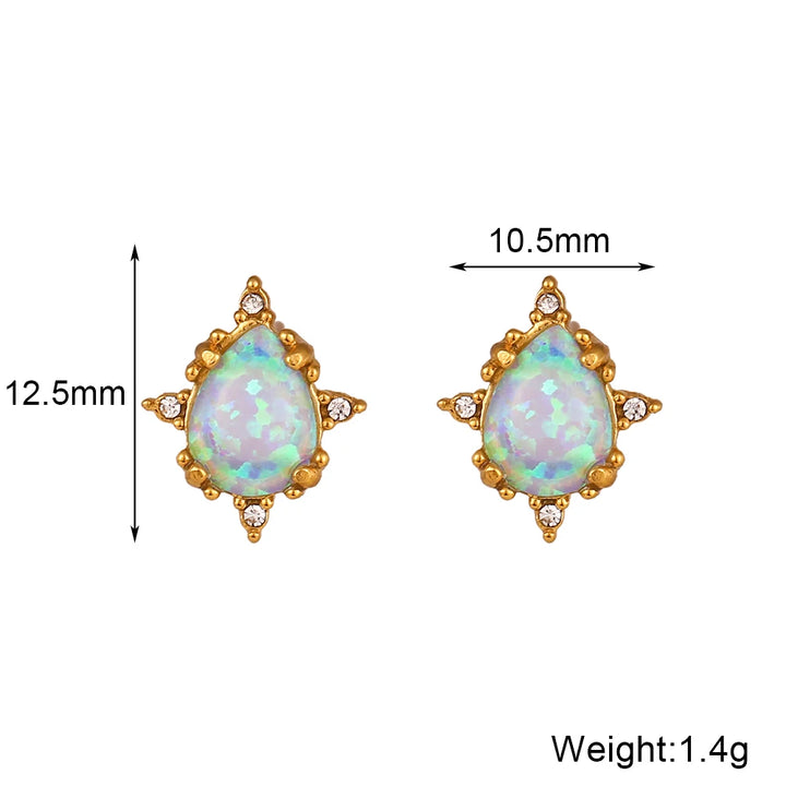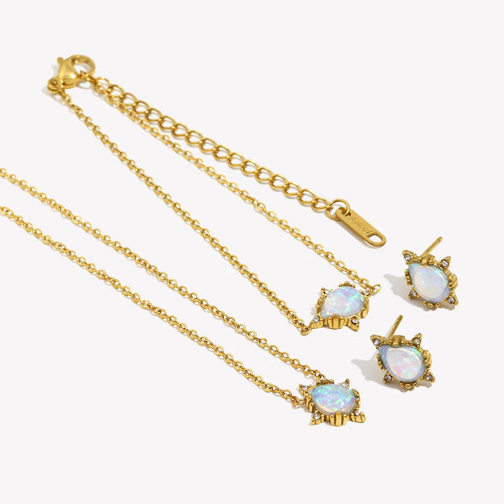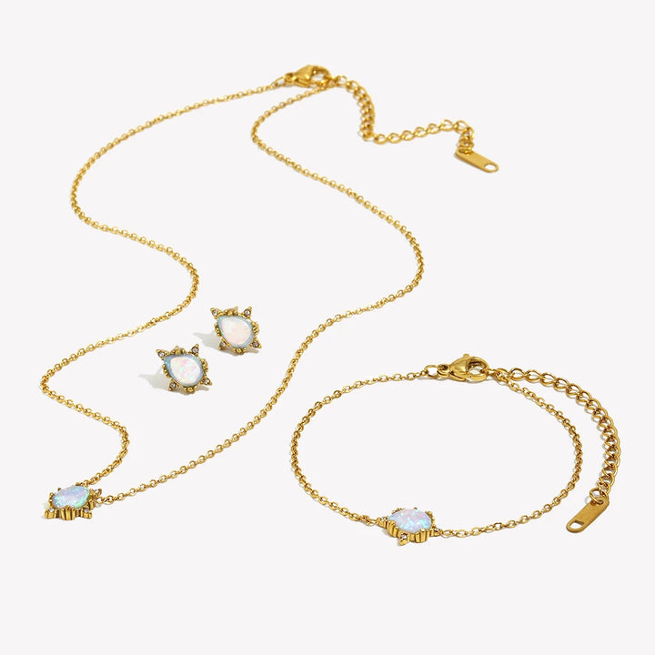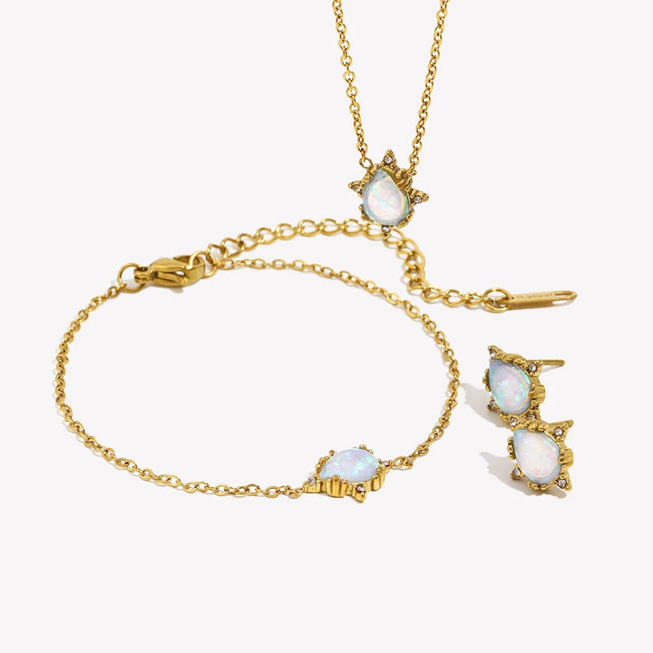 E.B.belle Elegant Bridal's Jewelry Accessories Waterdrop Necklace Earrings Bracelets Stainless Steel Blue Opal Stone Jewelry Set