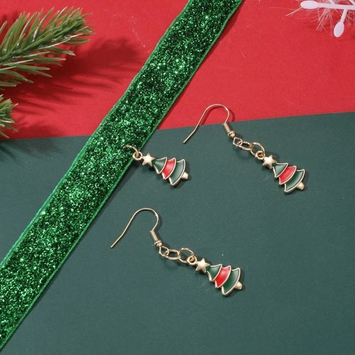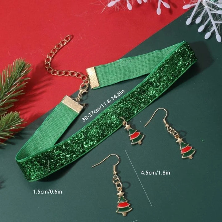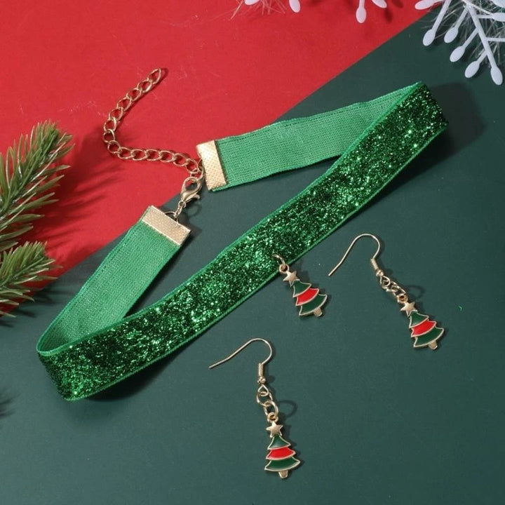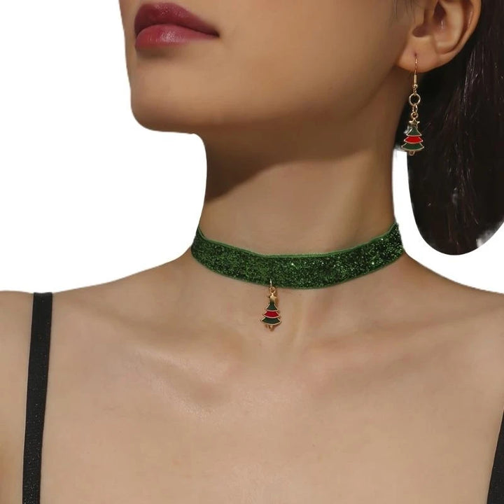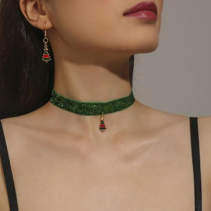 E21F Christmas Jewelry Set Tree Drop Earrings Choker Necklace for Women Teen Girls