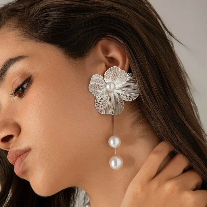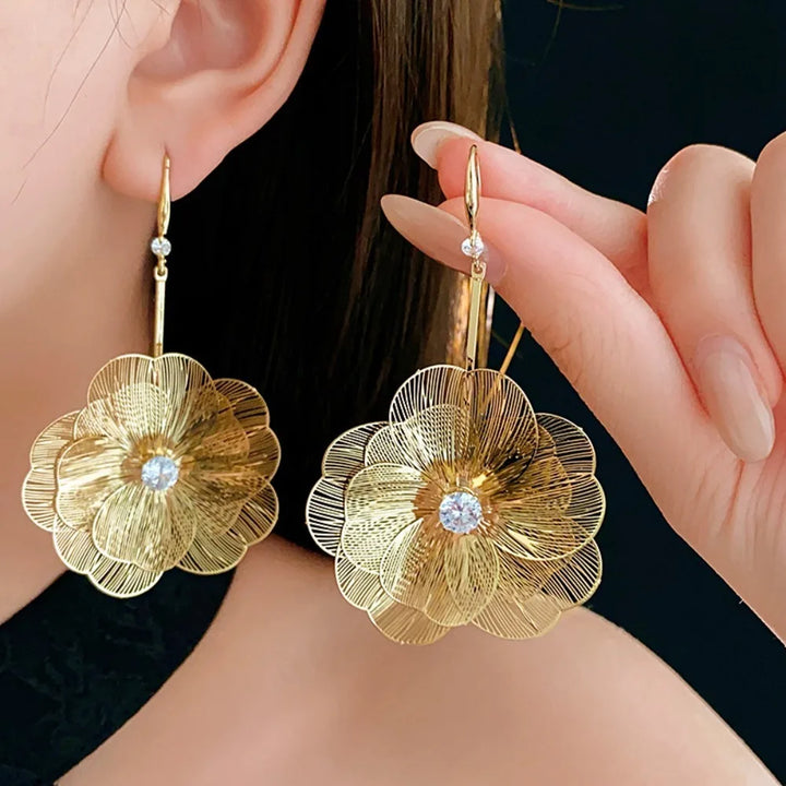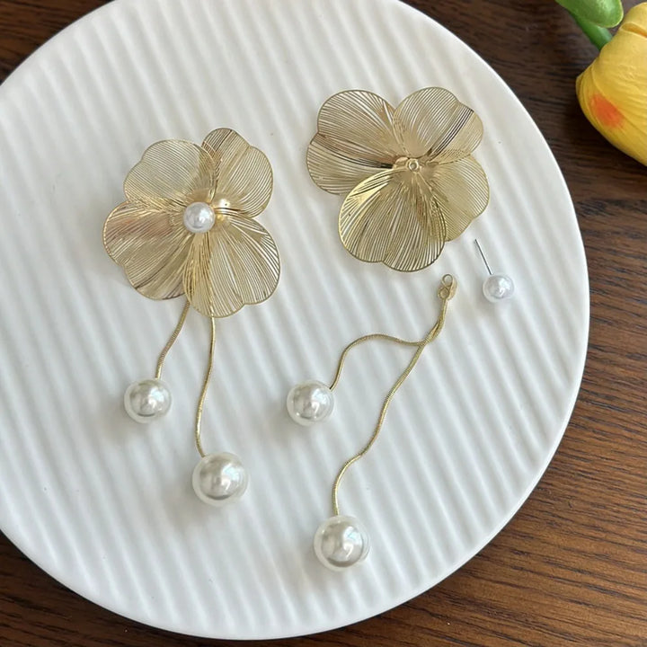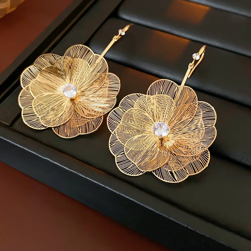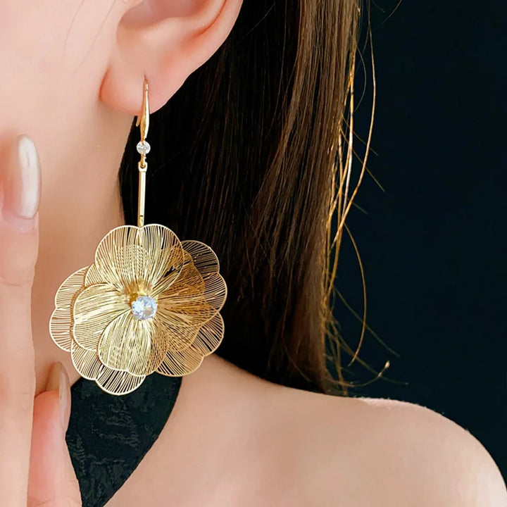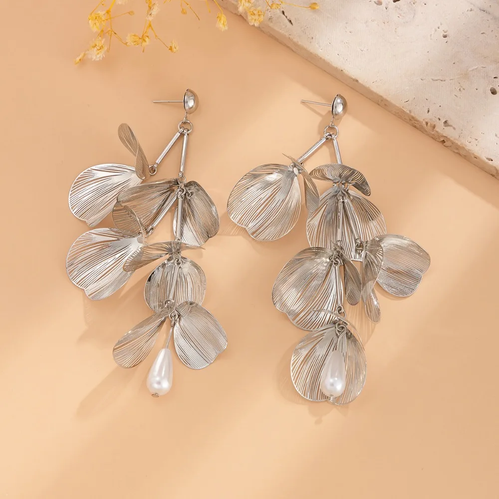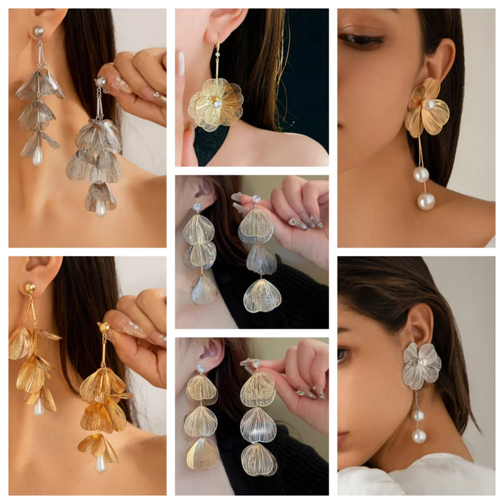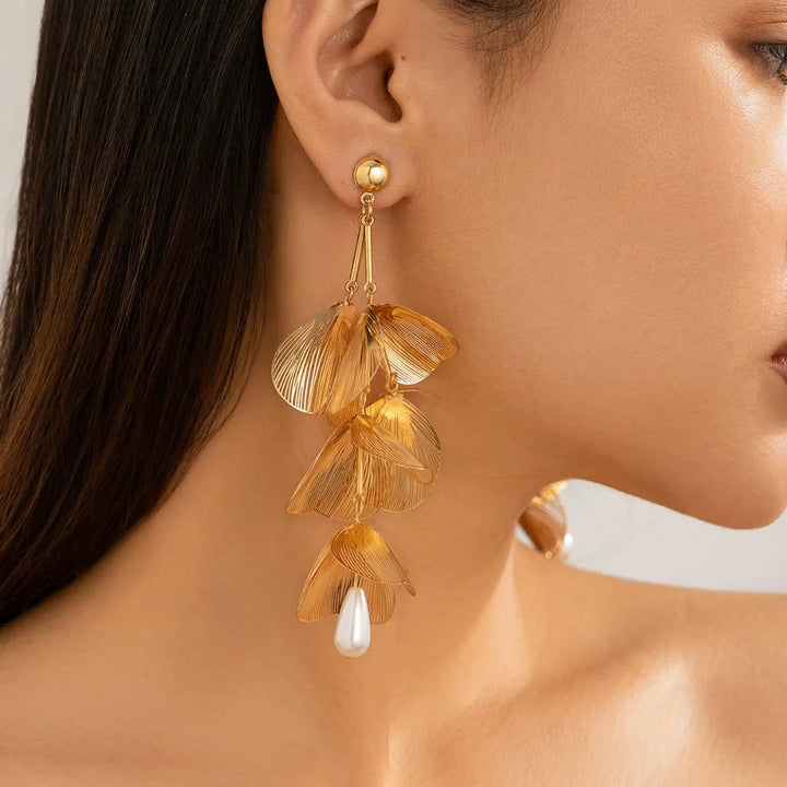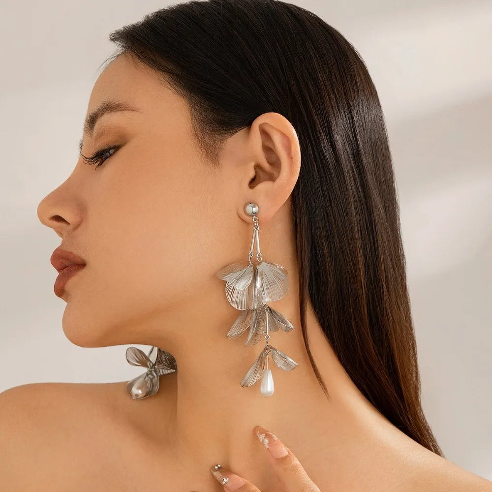 Ear Studs Flower Long Hanging Earrings Retro Metal Petal Earrings Studs Elegant Trendy Ginkgo Leaf Hollow Earrings Unisex