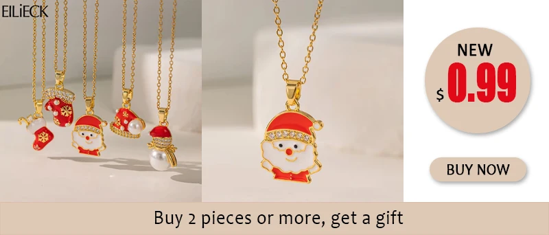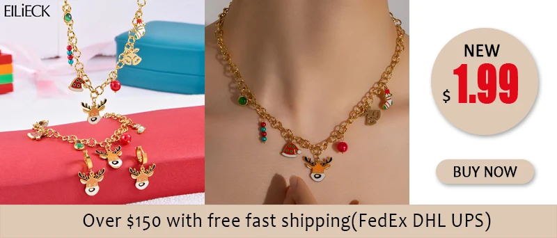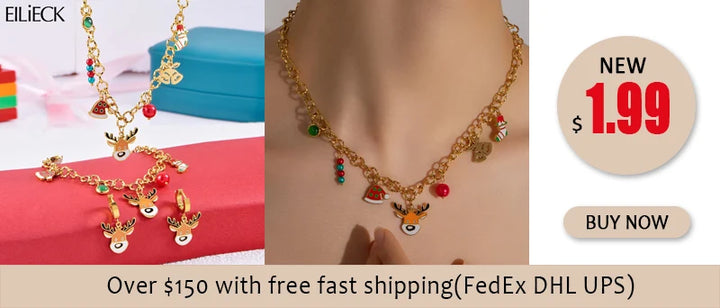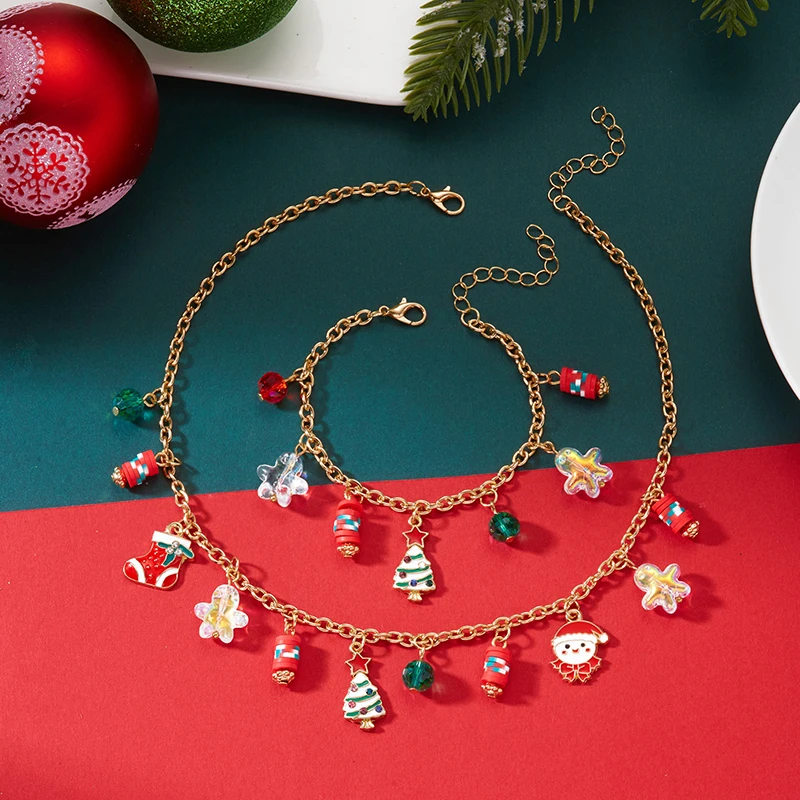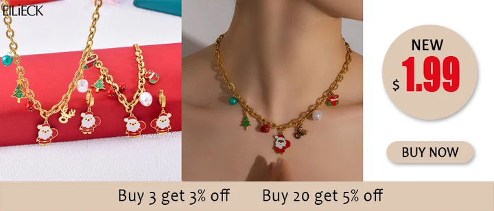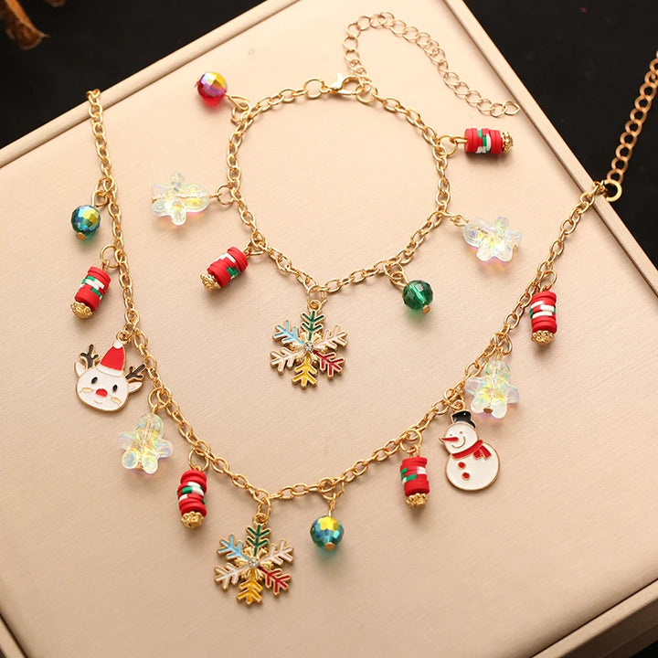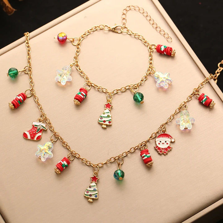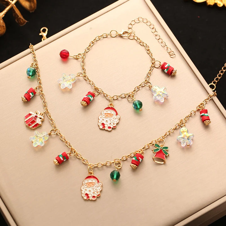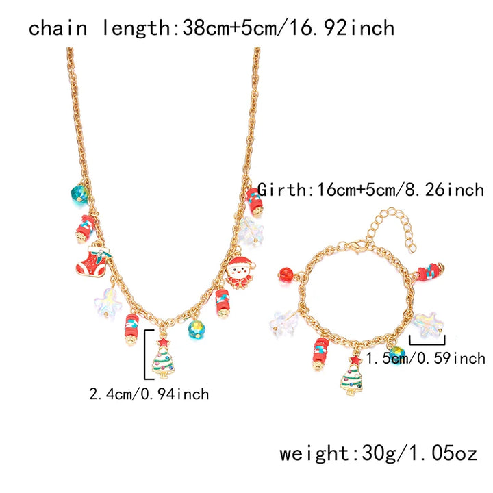 EILIECK Cartoon Creative Christmas Santa Claus Bells Necklace Bracelet Set For Women Fashion Waterproof Jewelry Set Holiday Gift