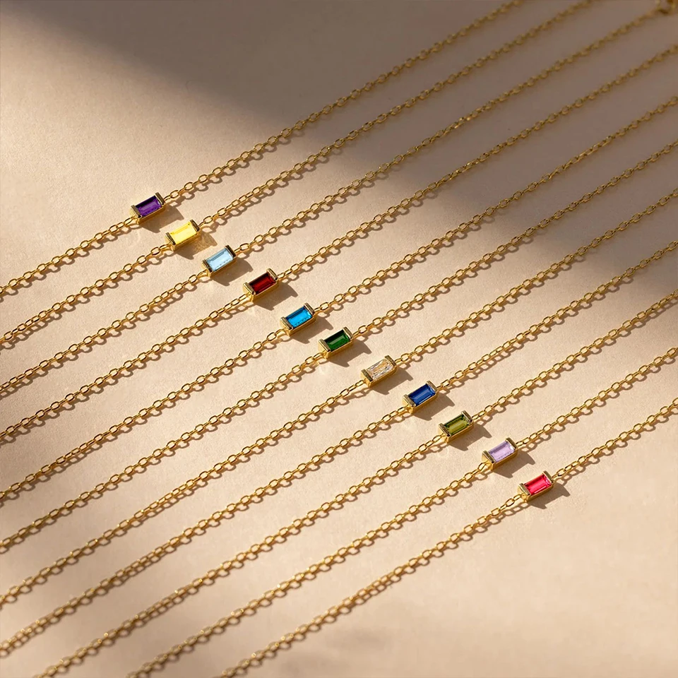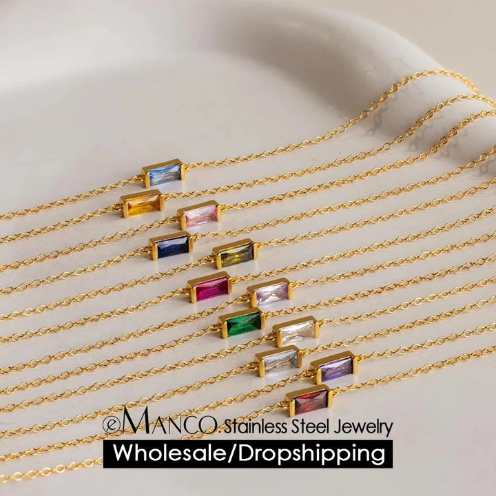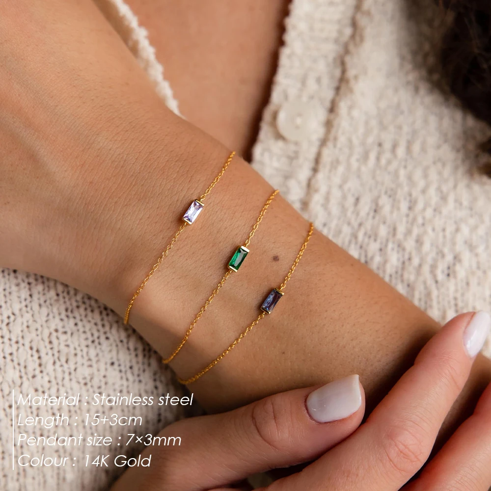 eManco Stainless Steel Bangle 7*3MM Square Birthstone Bracelet Sparkling High-end Rhinestone Accessories Gift