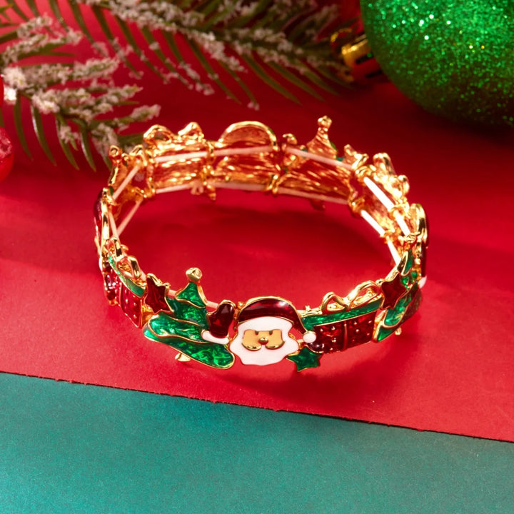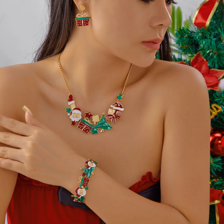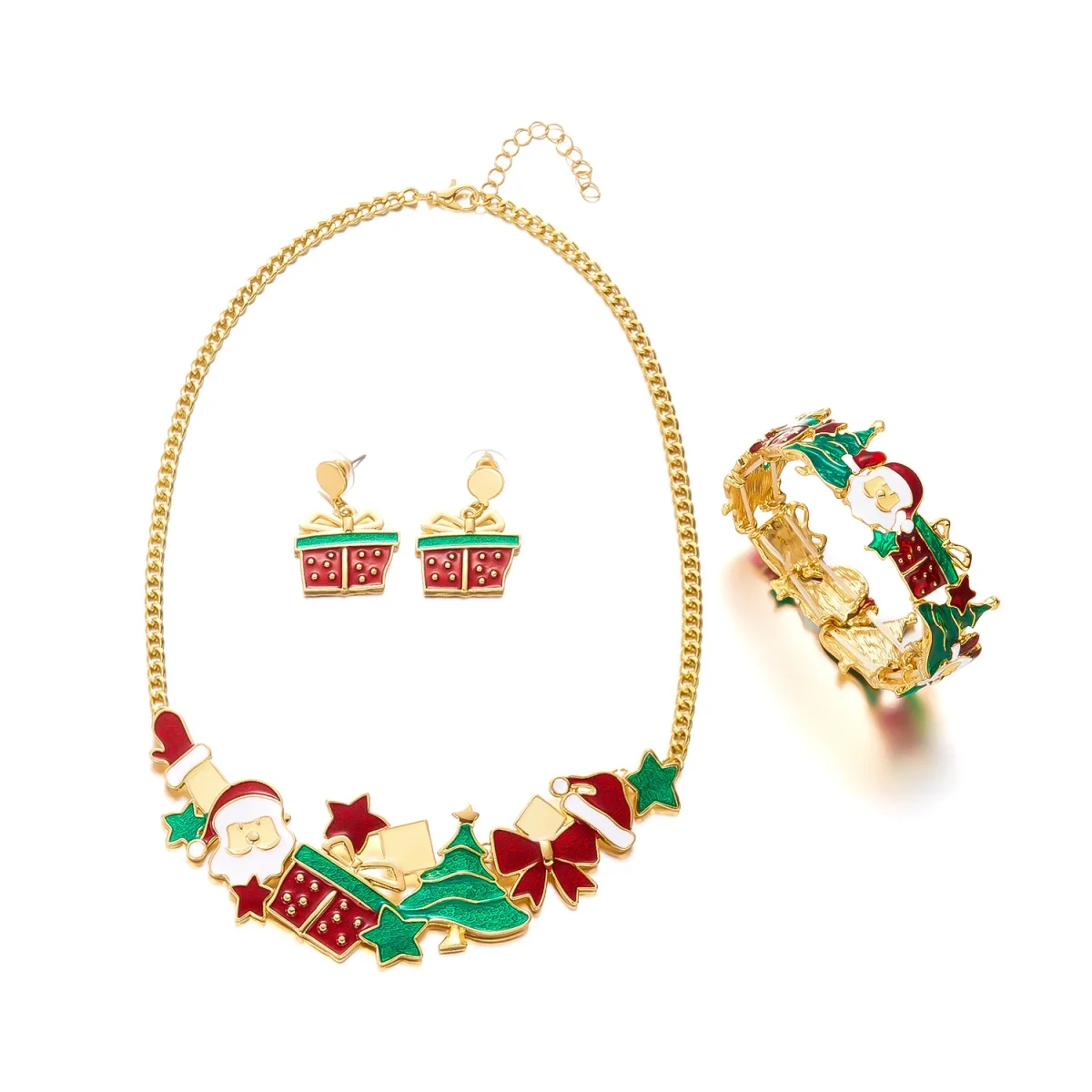 Enamel Christmas Jewelry Set Santa Claus Xmas Tree Gift Box Star Glove Bracelet Necklace Earrings Set Holiday Gift For Women Men