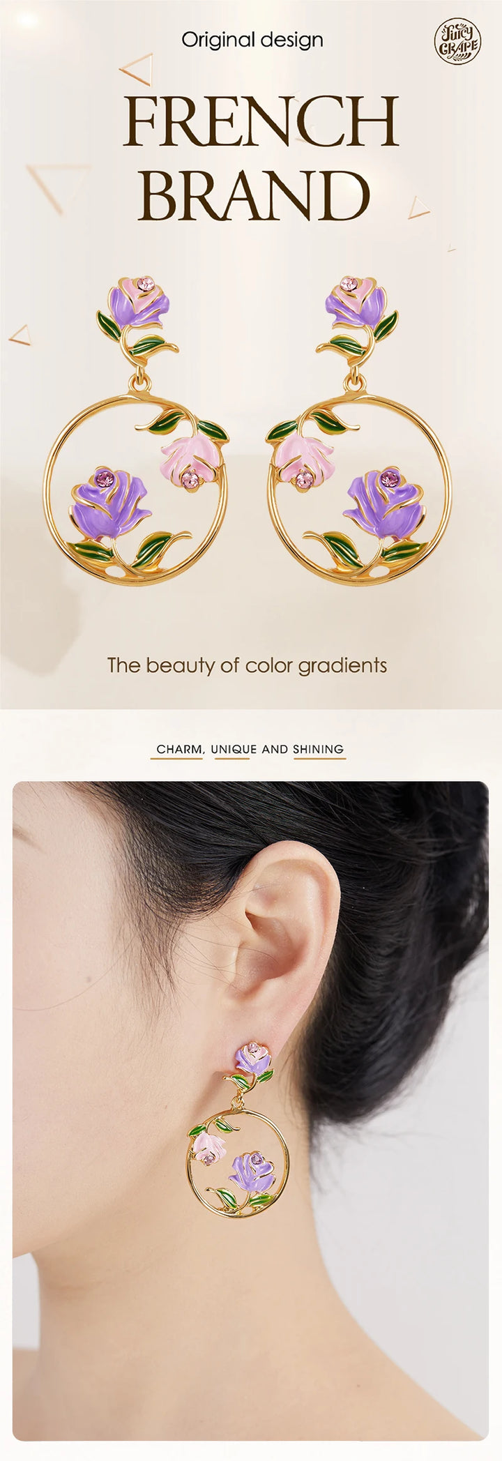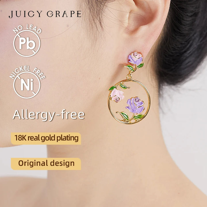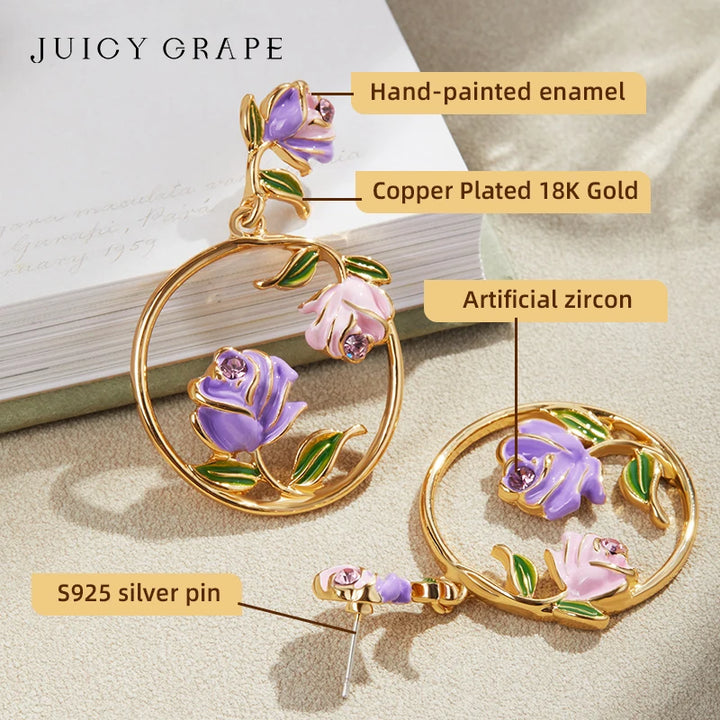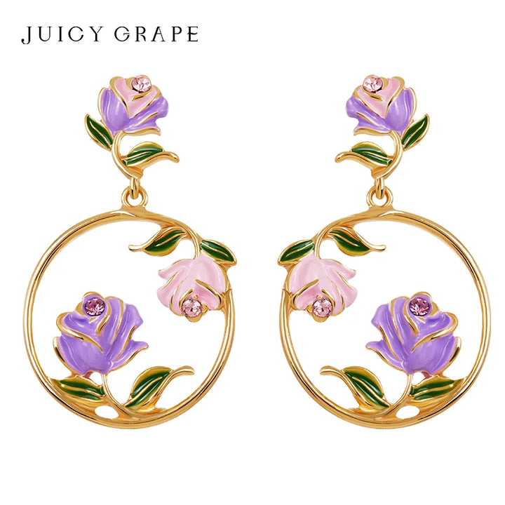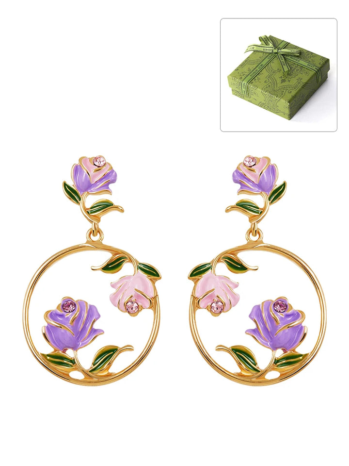 Enamel Floral Hoop Earrings - 18K Gold Plated Circle Design | Hand-Painted Botanical Jewelry for Parties & Birthdays