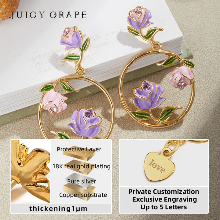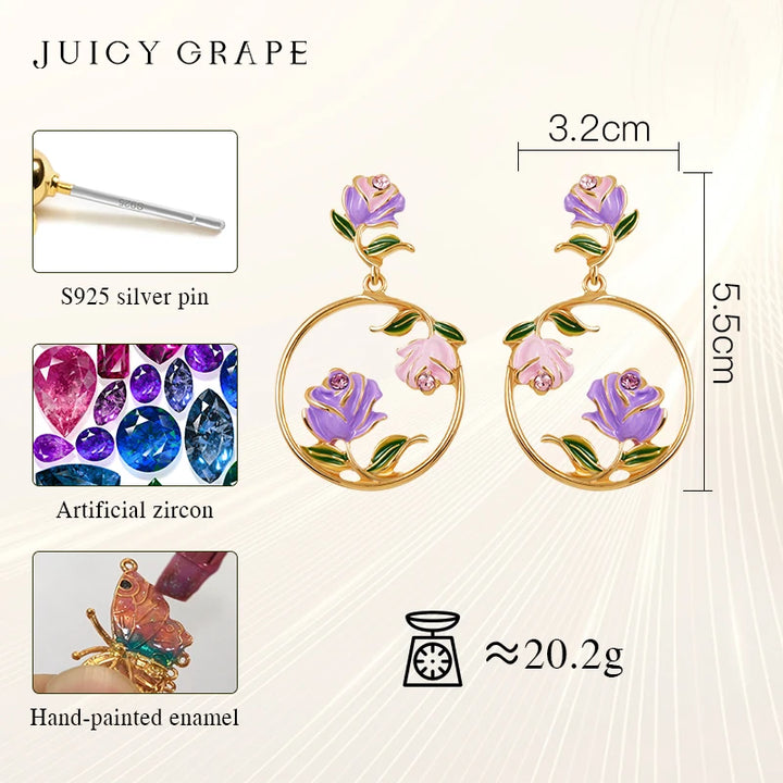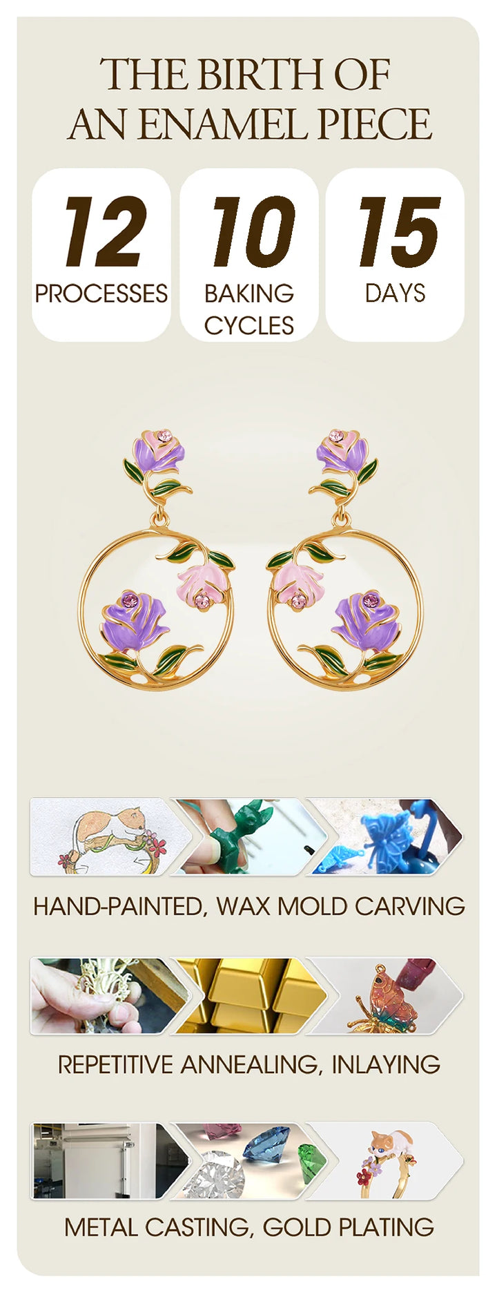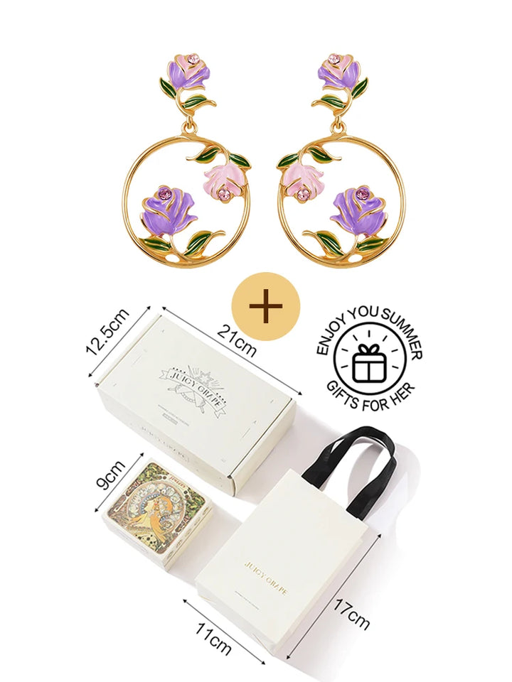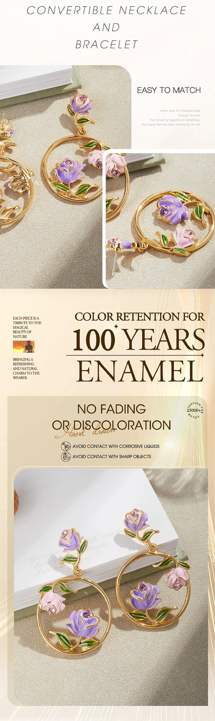 Enamel Floral Hoop Earrings - 18K Gold Plated Circle Design | Hand-Painted Botanical Jewelry for Parties & Birthdays