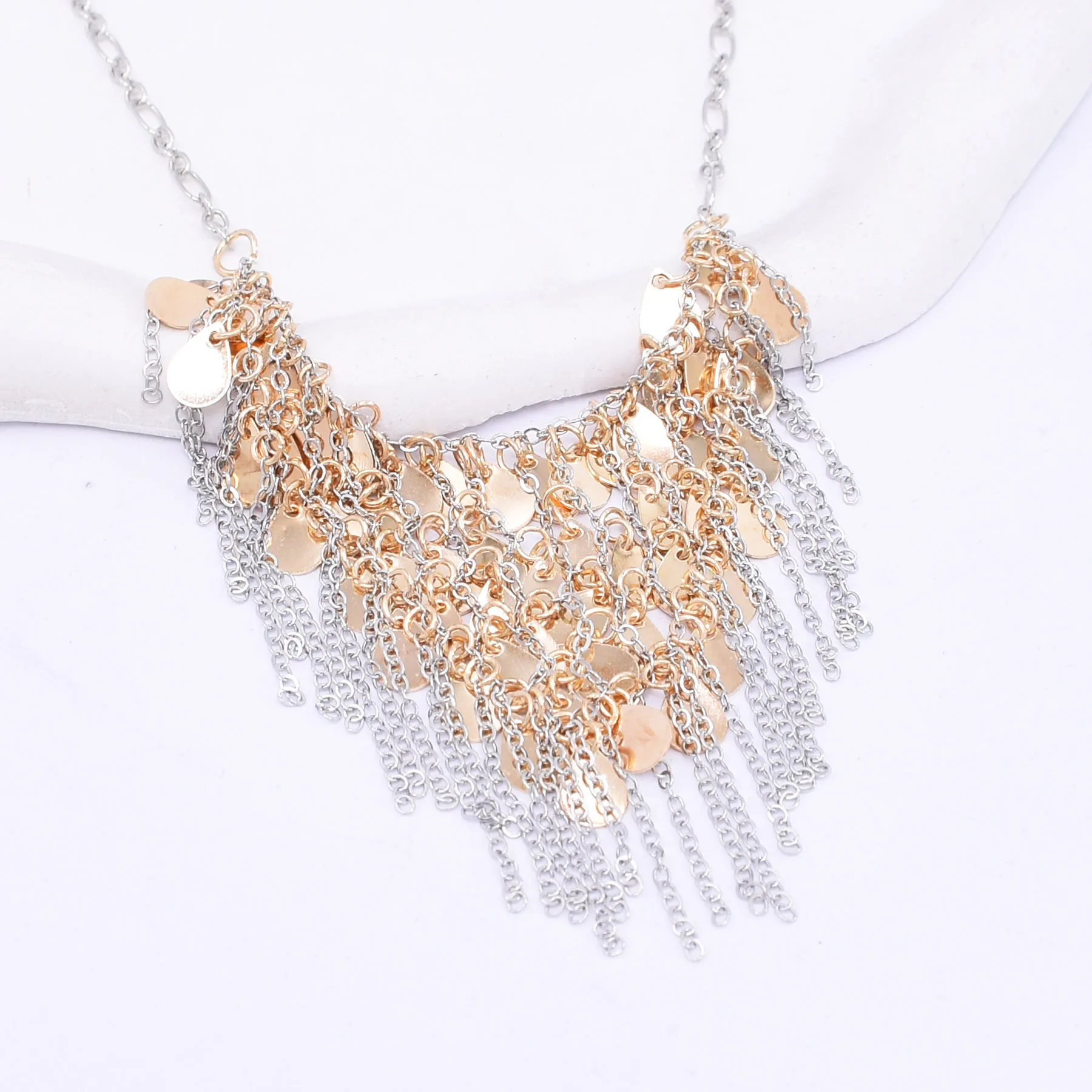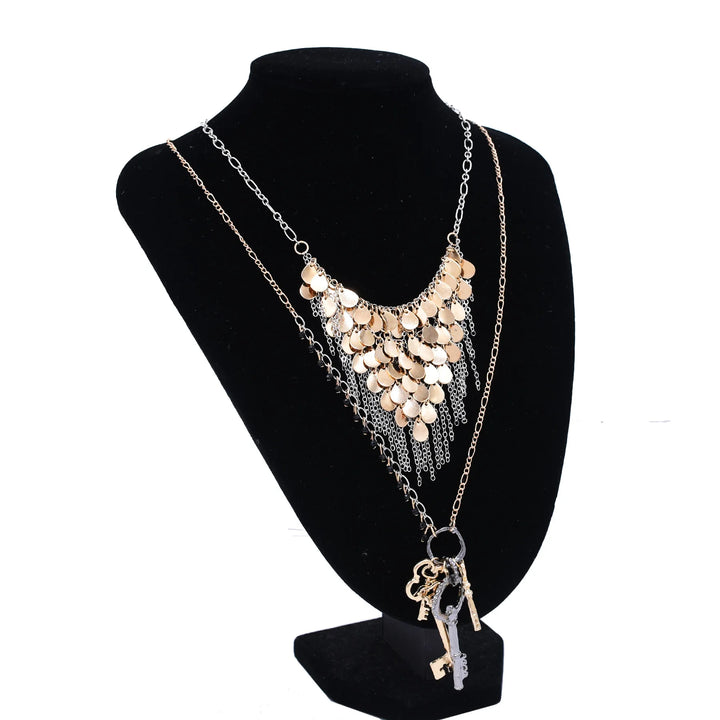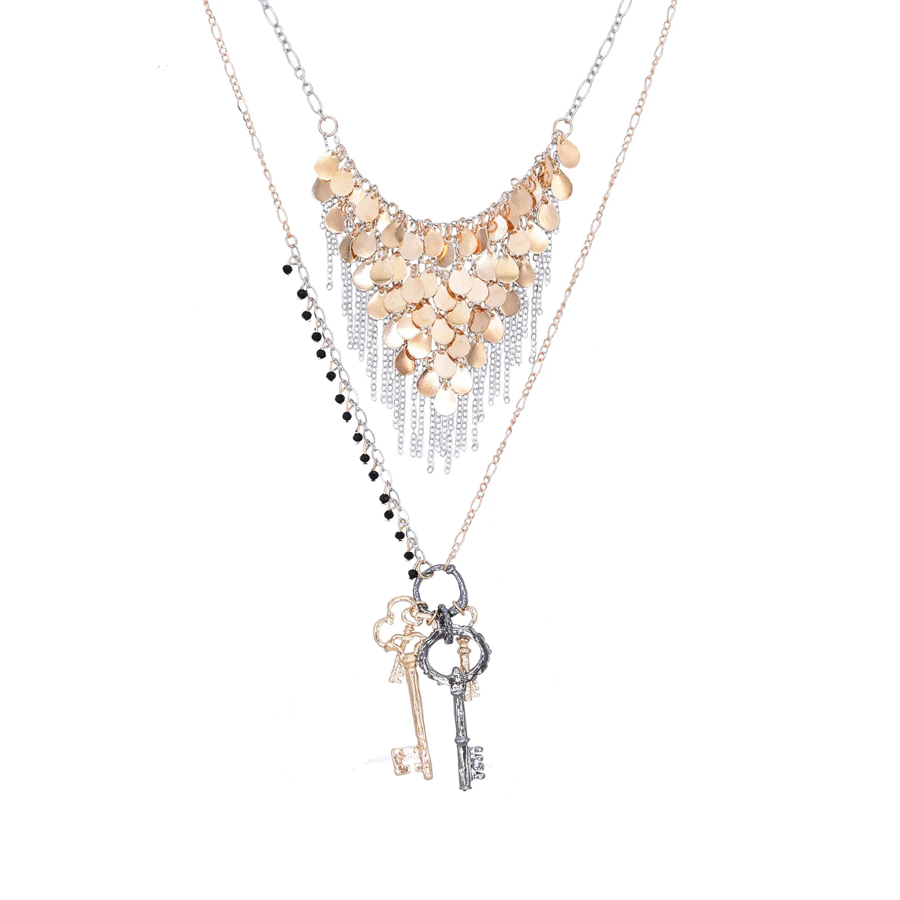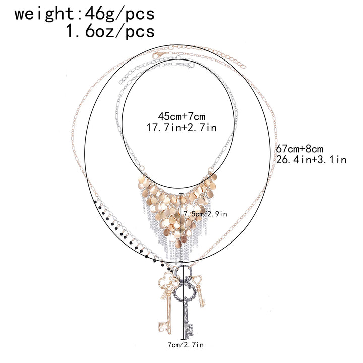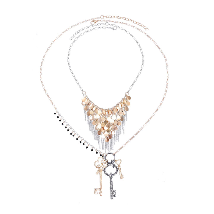 European Style Double Layer Water Drop Metal Tassel Necklace Set Fashion Women's Key Pendant Choker Necklace