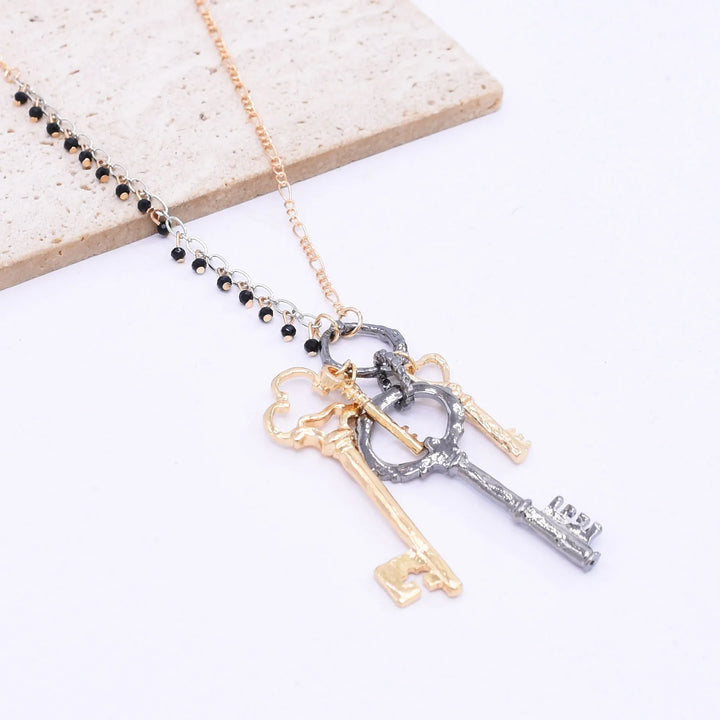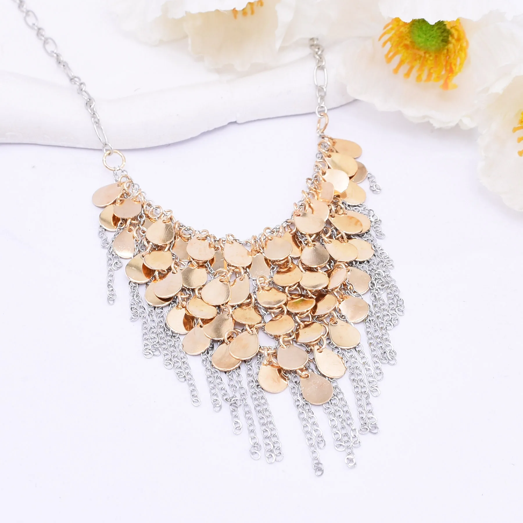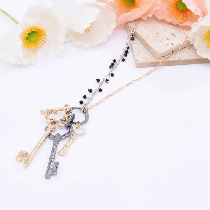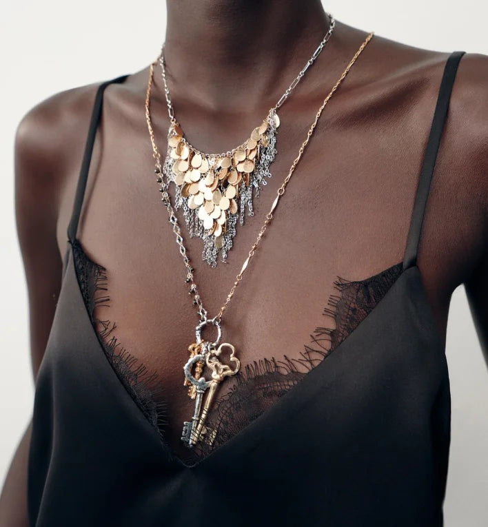 European Style Double Layer Water Drop Metal Tassel Necklace Set Fashion Women's Key Pendant Choker Necklace