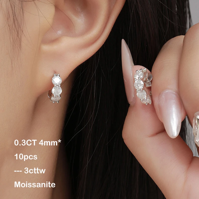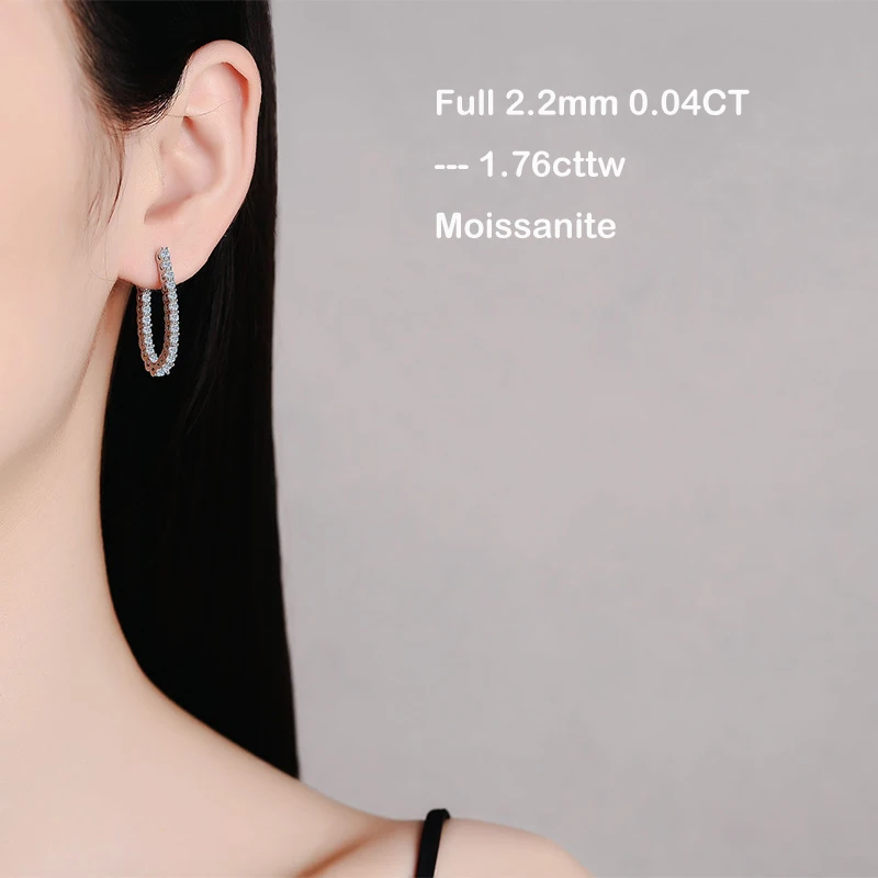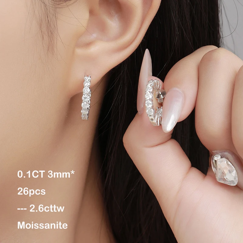 EWYA Sparkling D Color Full 3mm 2.6cttw Moissanite Hoop Earrings For Women S925 Silver Plated 18K Pass Diamond Test Earring Gift