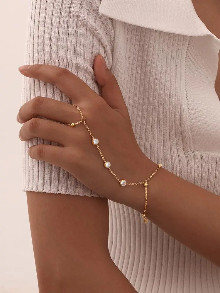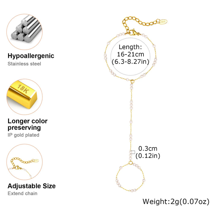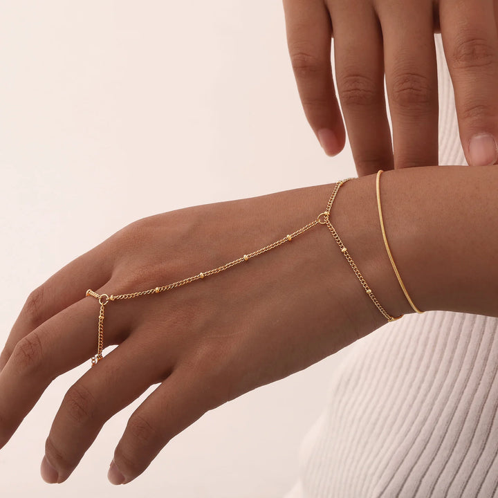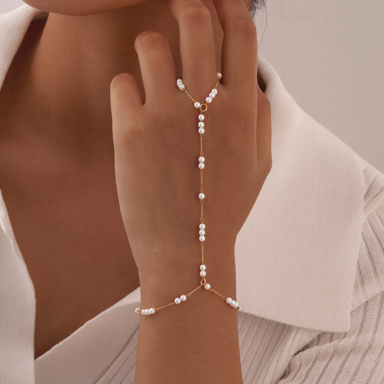 Exquisite Vintage Wrist Bracelet for Women Finger Ring Chain Charms Beads Bracelet Chain Lady Trendy Aesthetic Jewelry Set