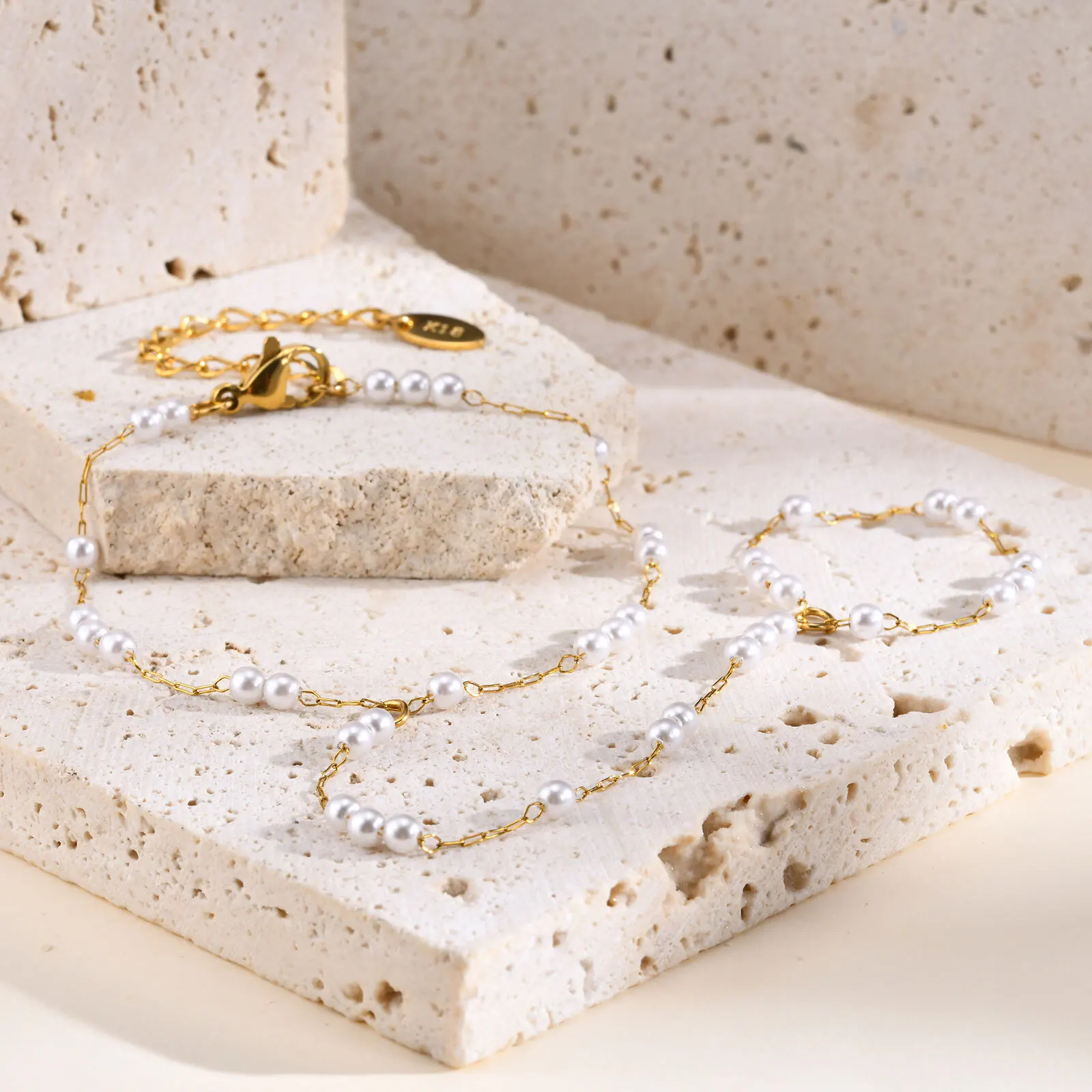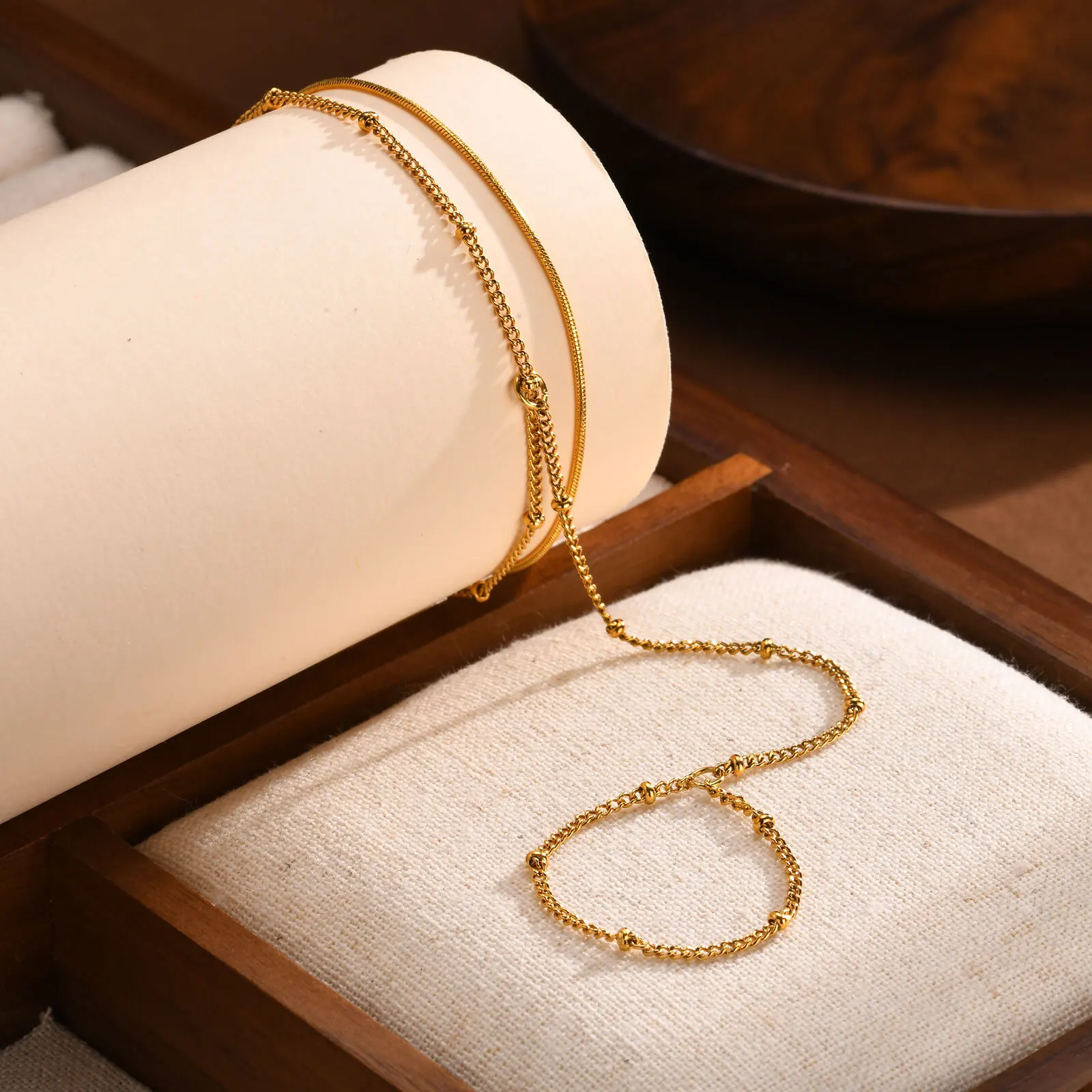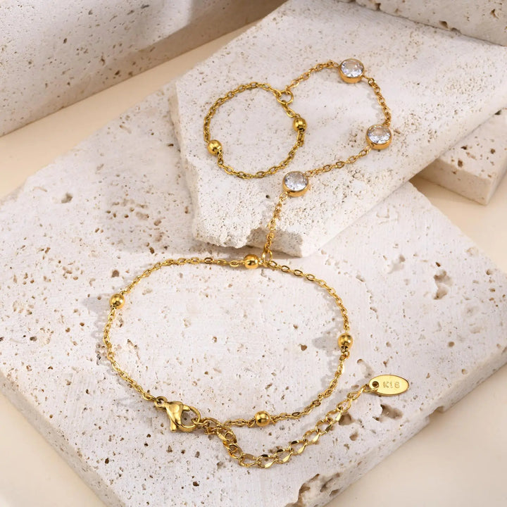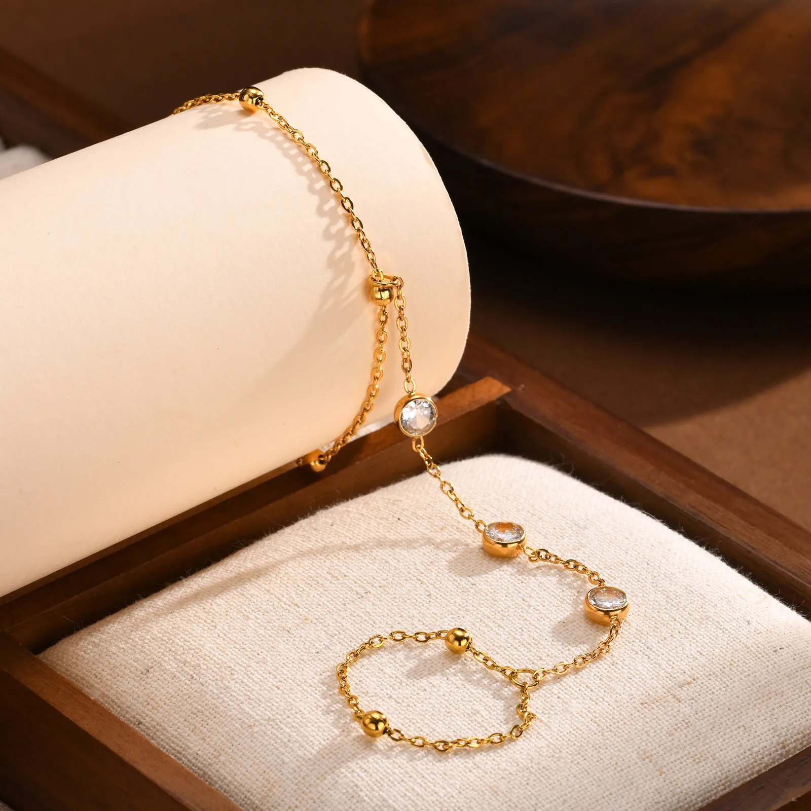Exquisite Vintage Wrist Bracelet for Women Finger Ring Chain Charms Beads Bracelet Chain Lady Trendy Aesthetic Jewelry Set