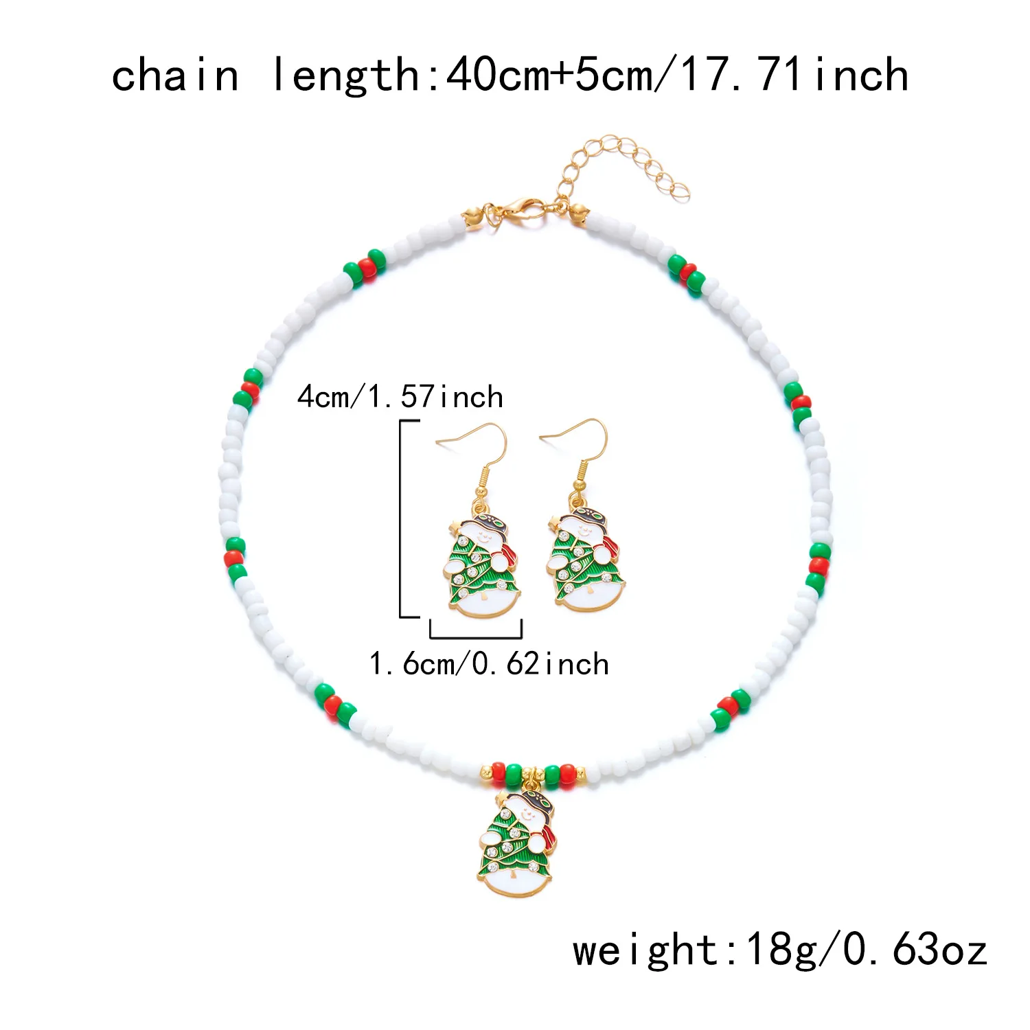 Name: Fashion 3-piece Christmas Tree Snowflake Rice Bead Necklace Earring Set Christmas Gift Suitable for Daily Wearing