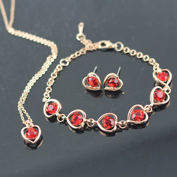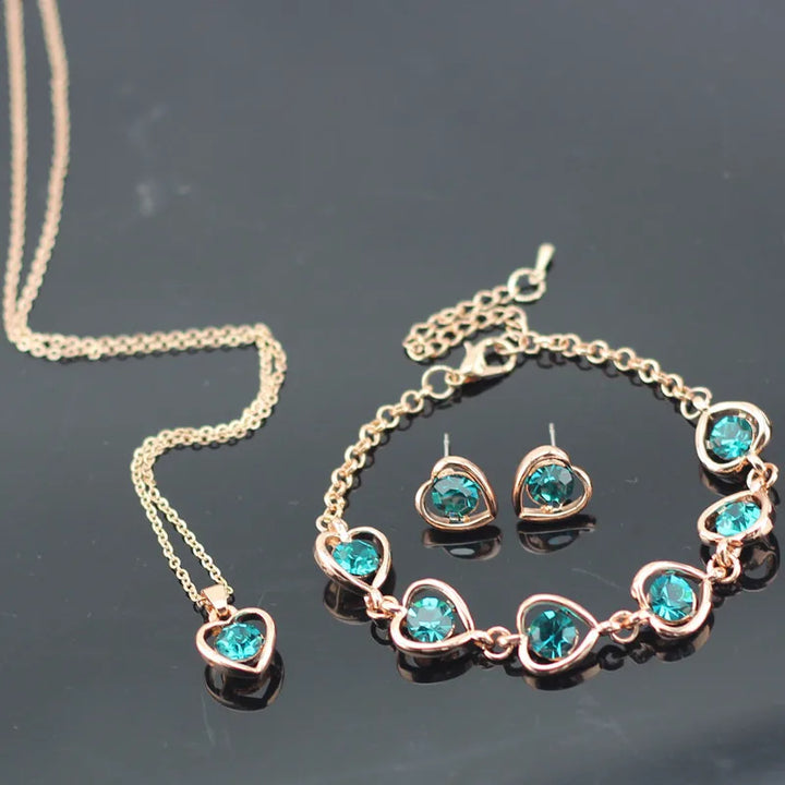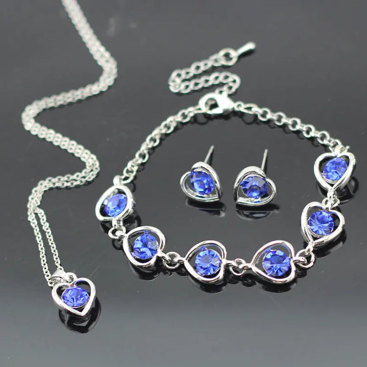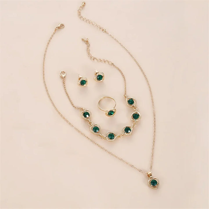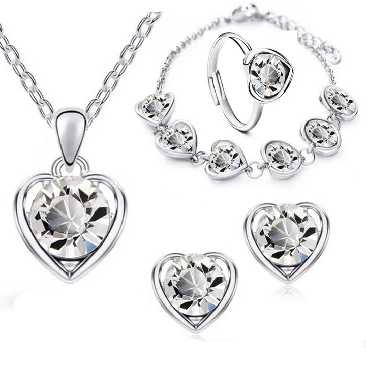 Fashion Bridal Wedding Jewelry Set Gorgeous Crystal Heart Necklace Rings Earrings Bracelet Women Anniversary Birthday Gifts