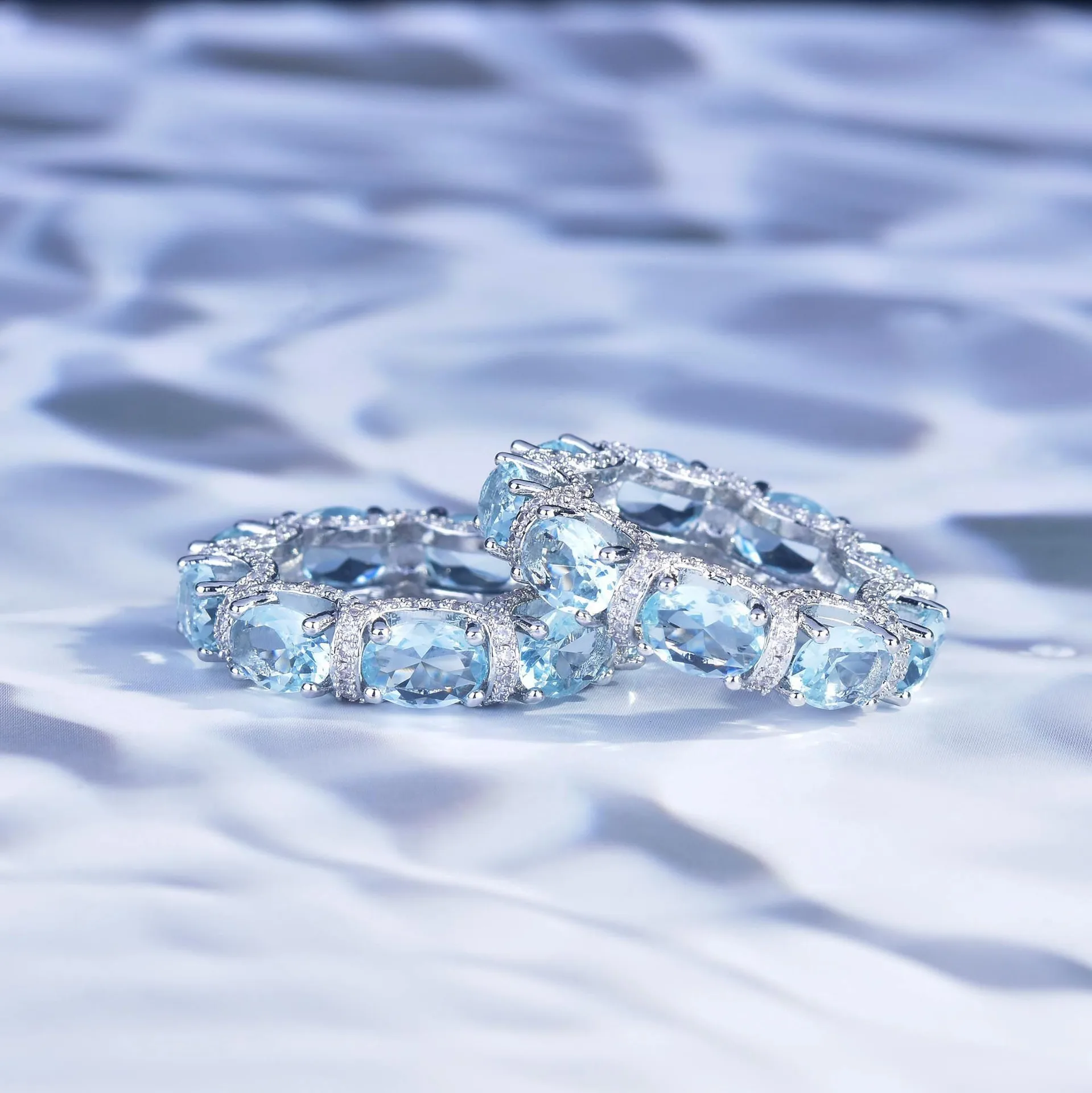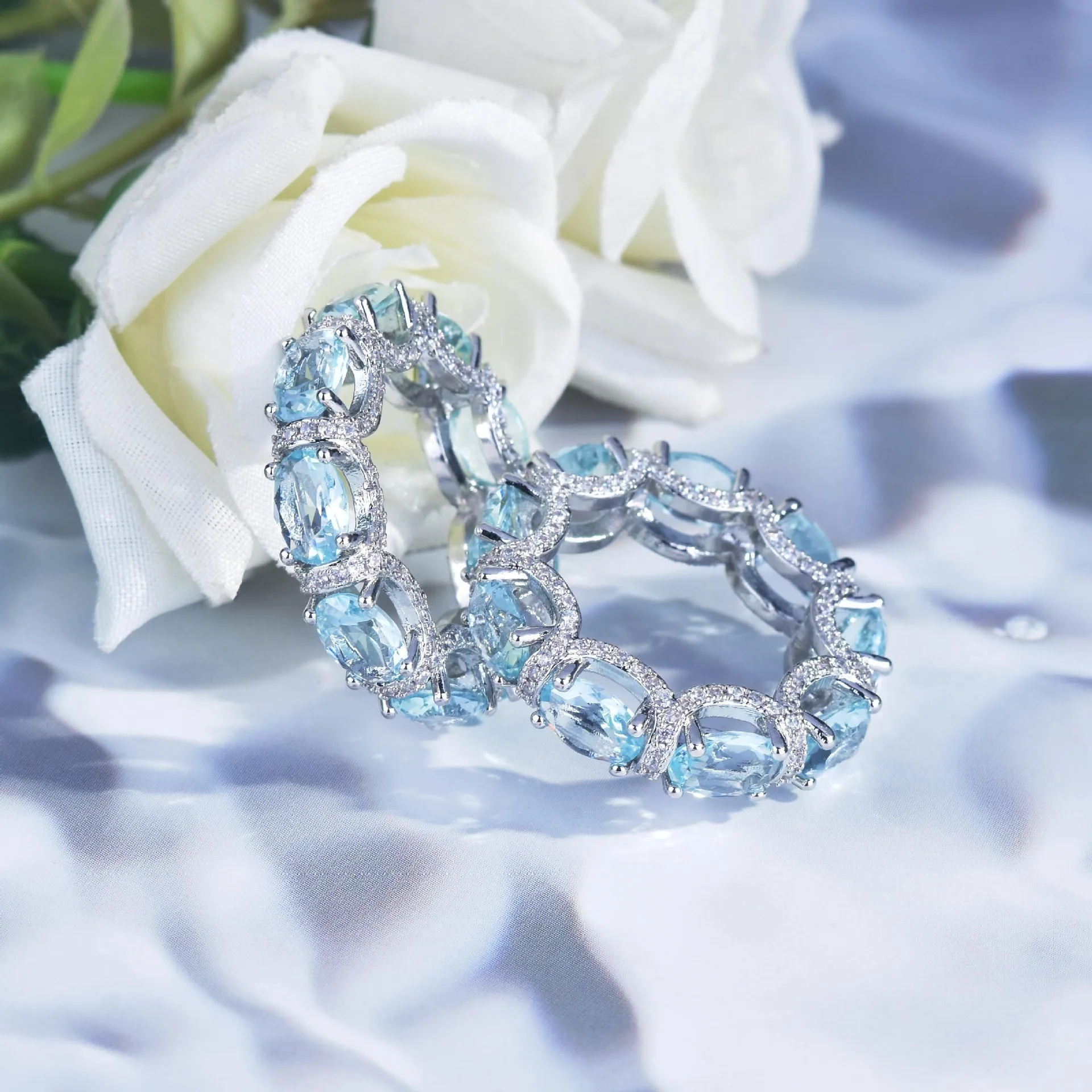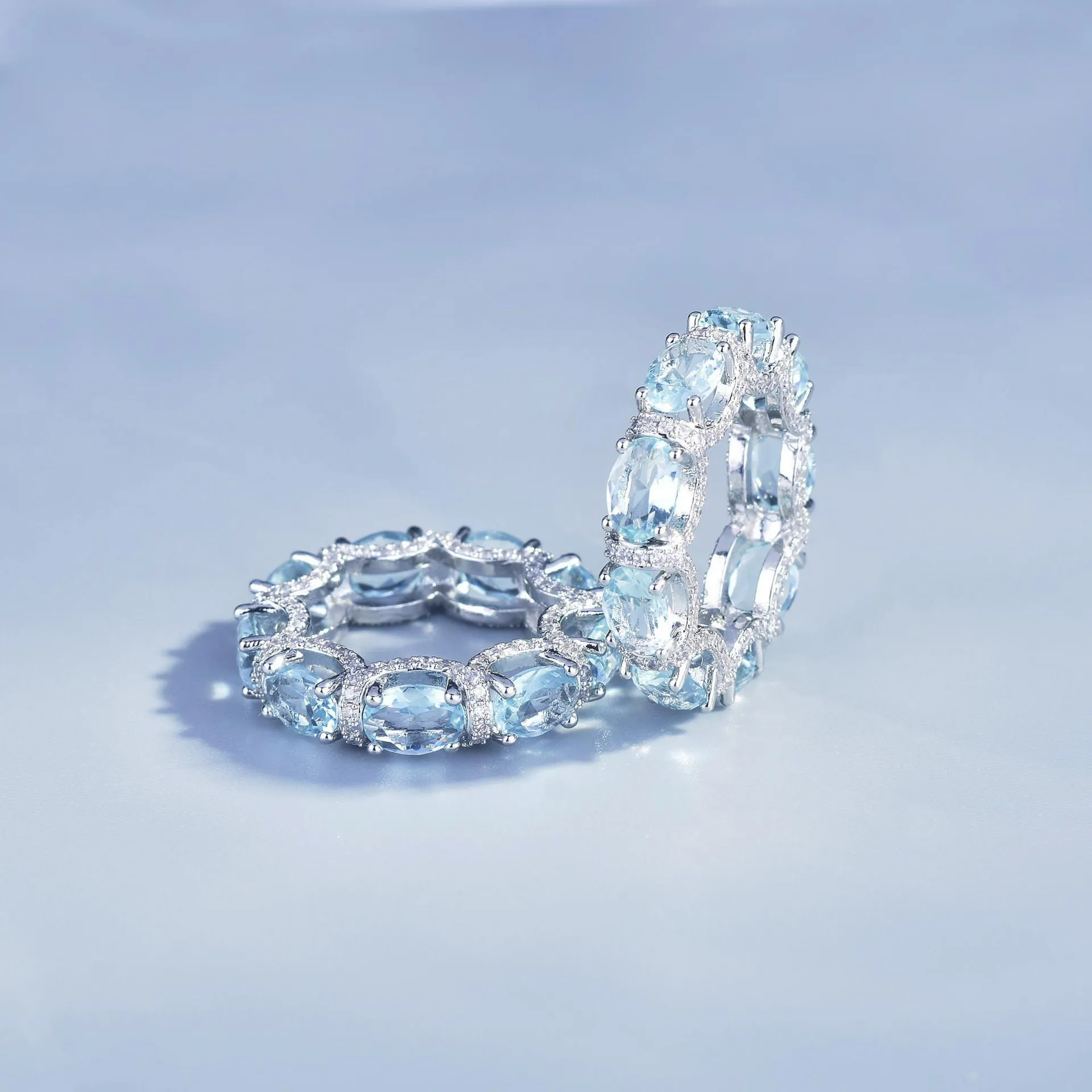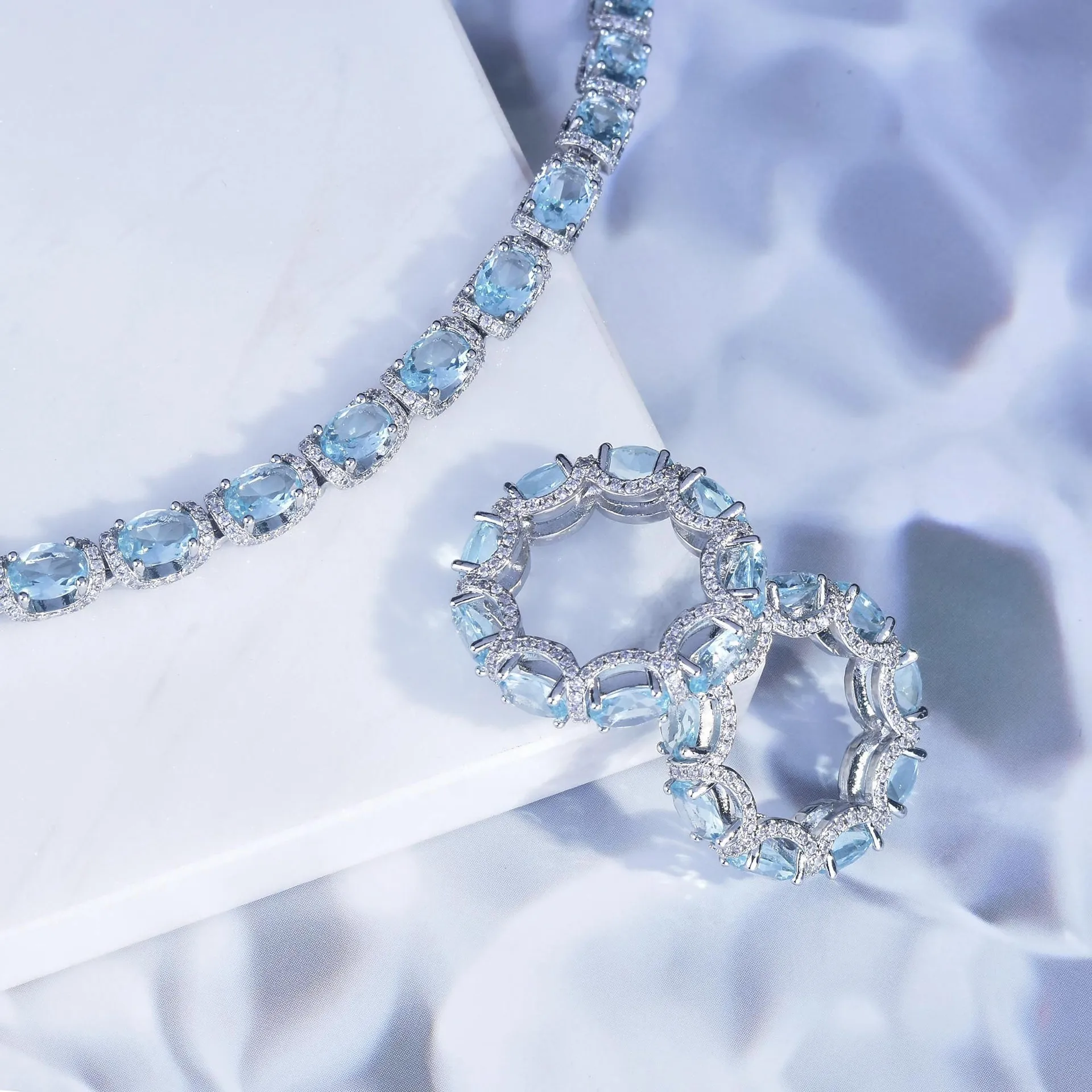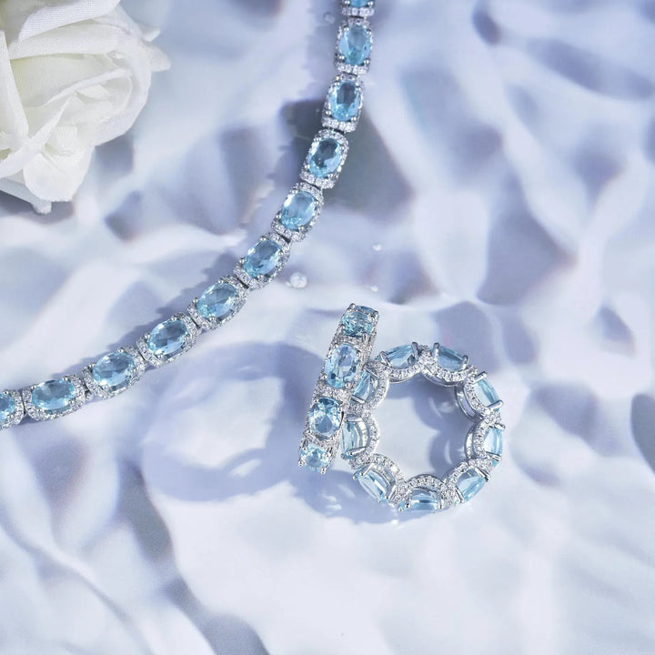 Fashion Jewelry Set for Women Round Aquamarine Bracelet Ring Sets Zircon Bridal Decoration Accessory Banquet Luxury Chain Gifts