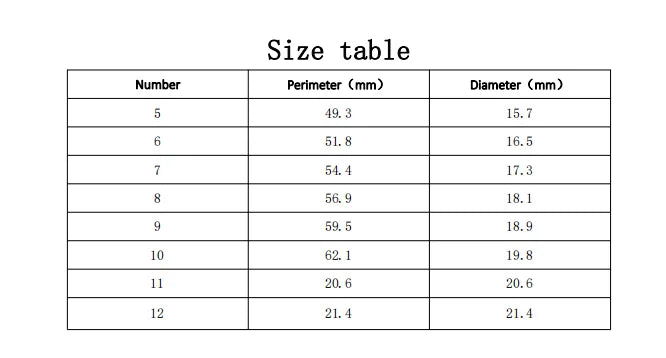 Ring size 10, bracelet 17cm, Ring size 7, Ring size 6, Ring size 9, Ring size 8 |