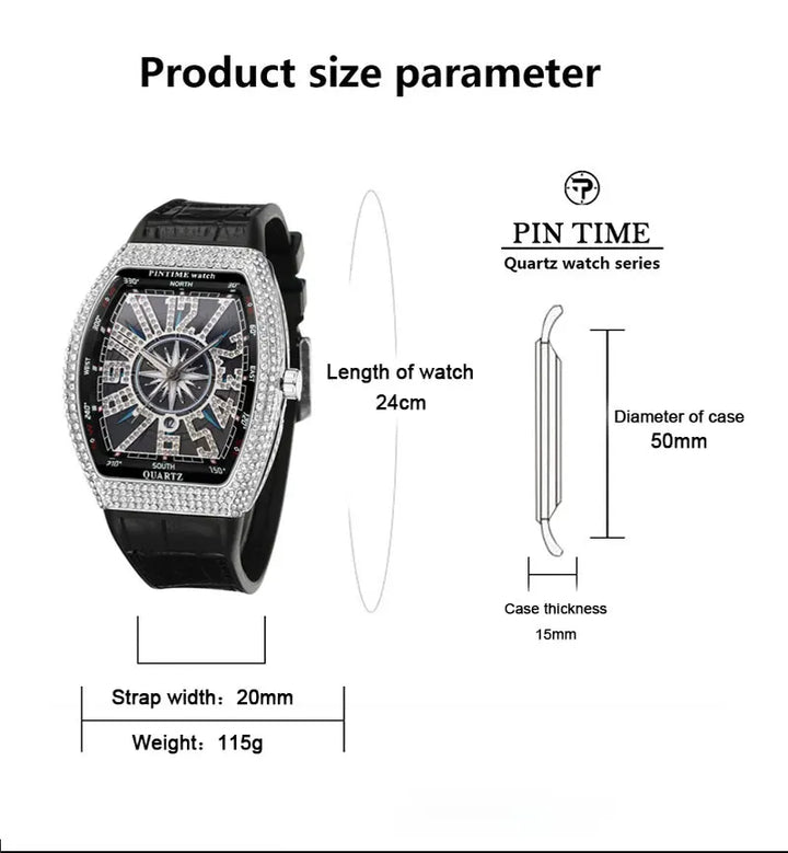 Fashion Mens Watches Men Wristwatches Automatic Quartz Man Clock Male Luxury Reloj Diamond Big Large Arabic Numeral Dial Watch