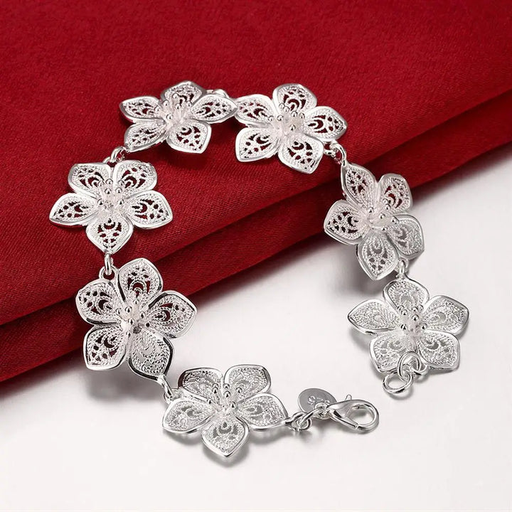 Fashion Party wedding 925 sterling Silver Jewelry sets fine Retro Flowers necklaces bracelets earrings for women Gifts