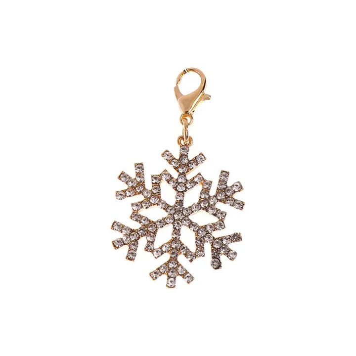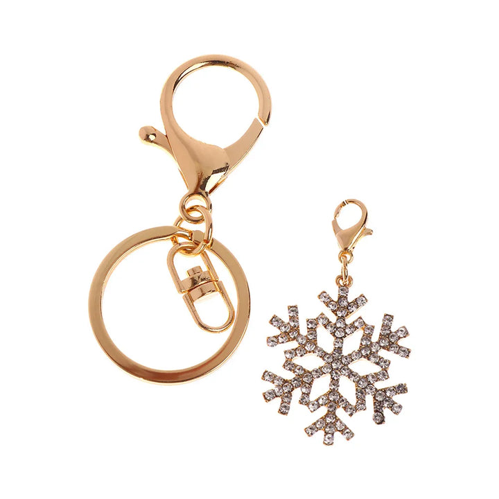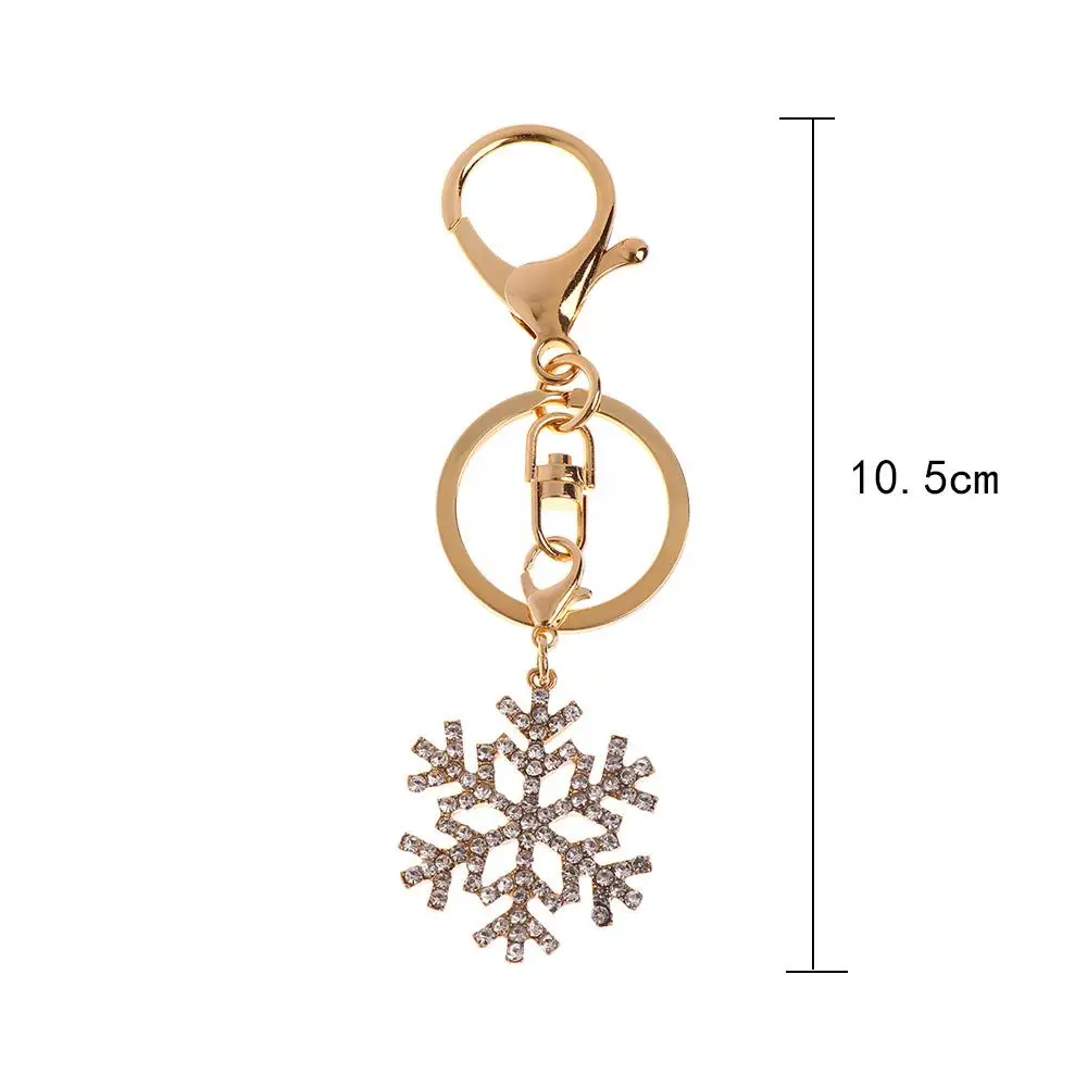 Fashion Trendy Hot Crystal Christmas Gift Gold-color Jewelry Snowflake Keychain Key Ring Pendant