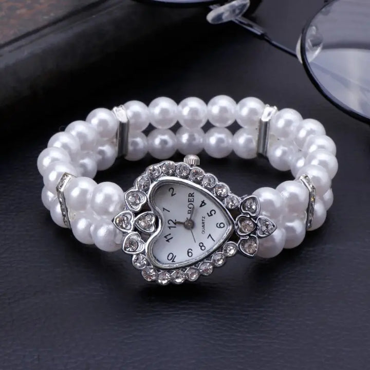 This watch is specially designed for women,which is luxury with exquisite design,simulated pearls and for rhinestone.