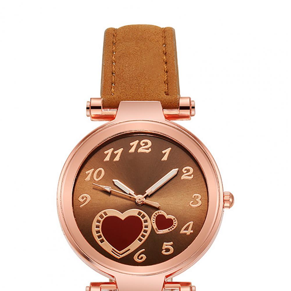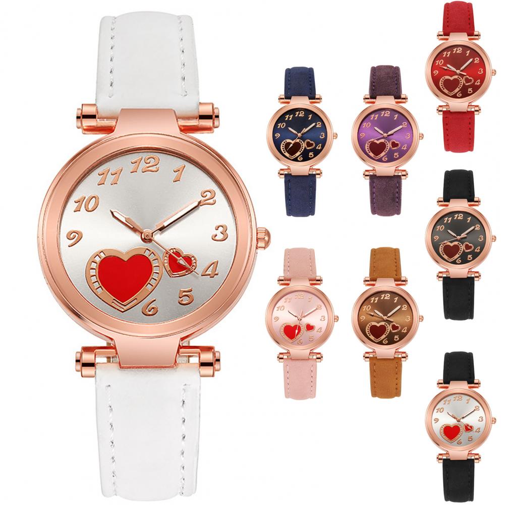 Fashion Wrist Watch Women Love Heart Dial Plate Round Dial Faux Leather Casual Quartz Wristwatches