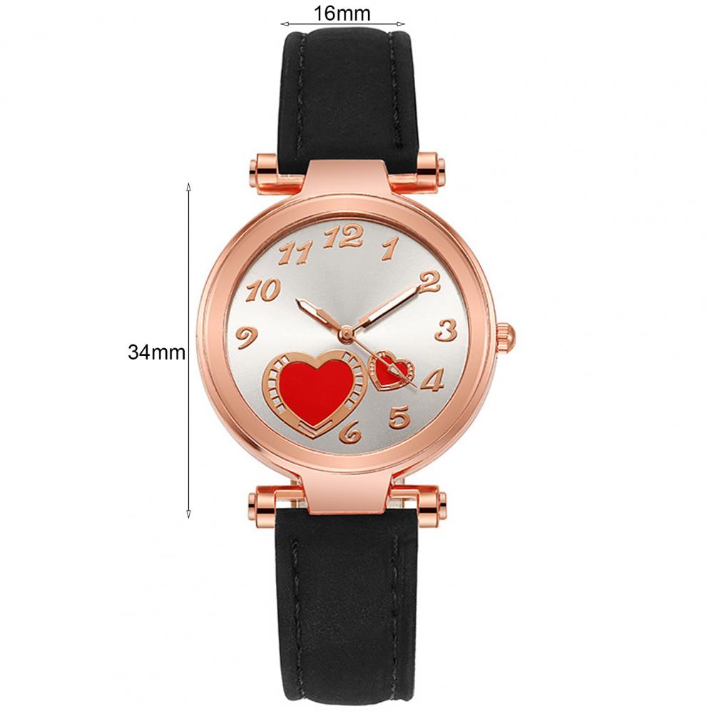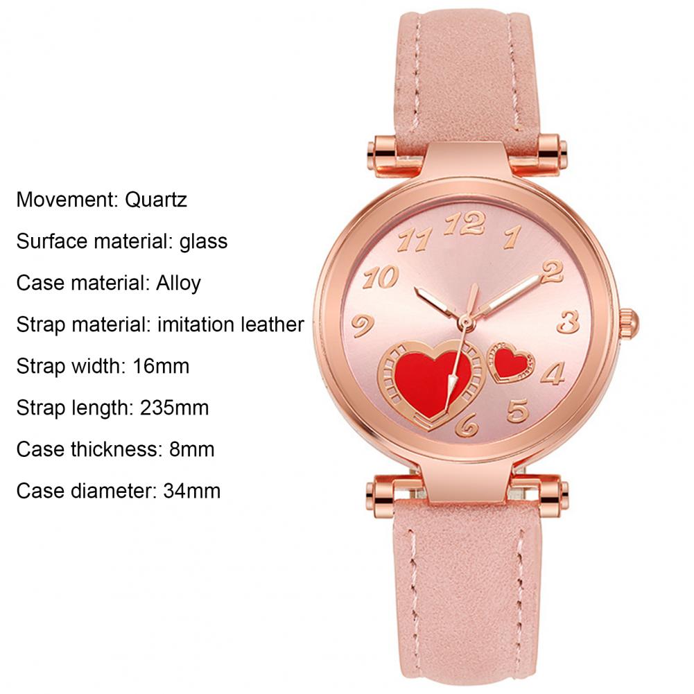 Women Watch Heart Dial Plate Anti-Scratch Faux Leather Girls Casual Wristwatch for Travel