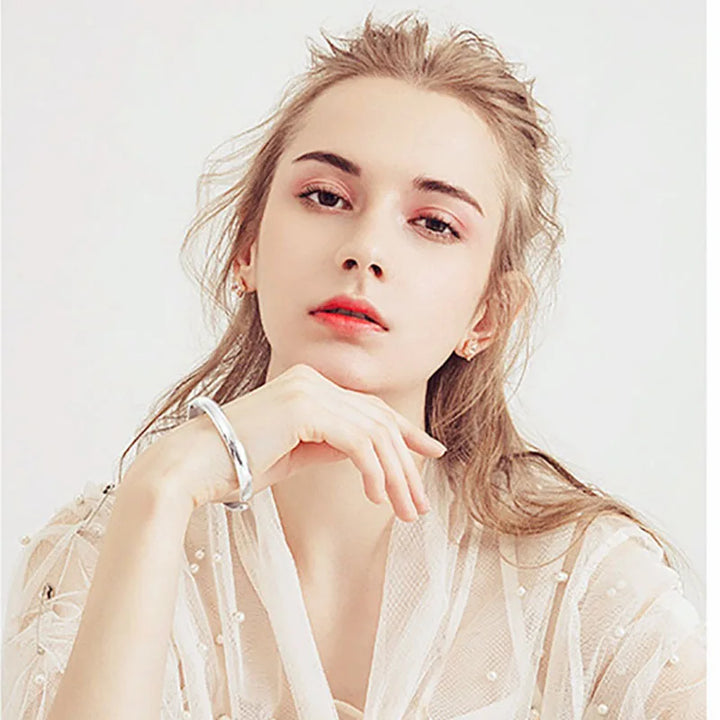 Foxanry Silver Color Terndy Couples Cuff Bangles & Bracelet Simple Smooth Bracelet Jewelry for Women Size 64mm Adjustable