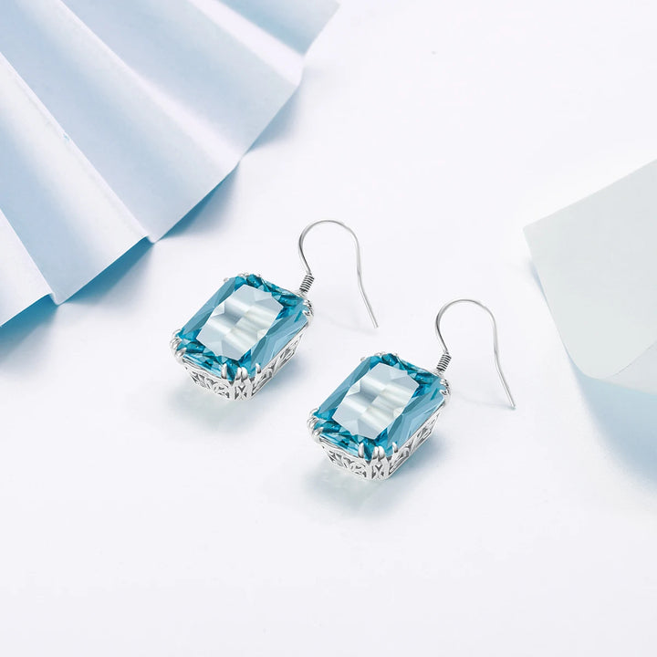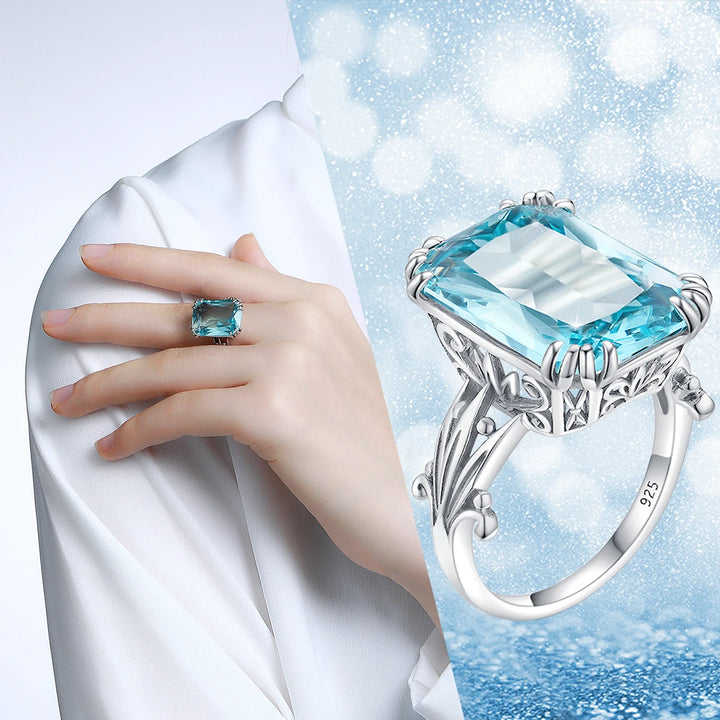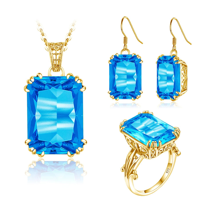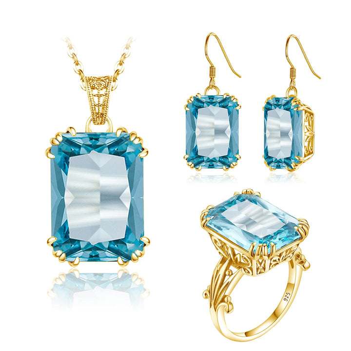 Genuine 925 Sterling Silver Jewelry Set For Women Aquamarine Pendant Earrings Ring Necklace Sets Fine Jewelry Handmade Filigree