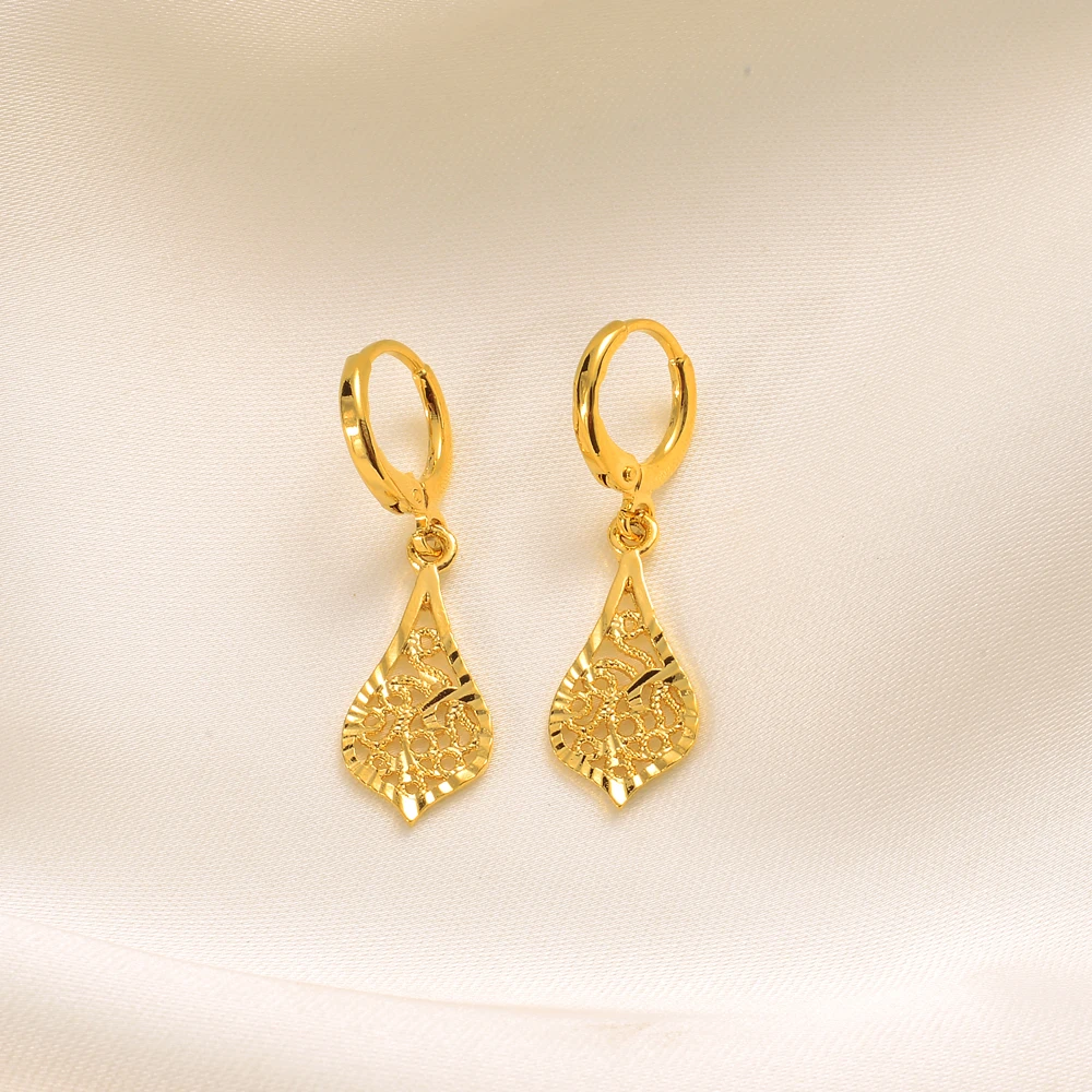 Gold Color Earrings Women's/Girls African Beautiful 24K Gold Color Plated Nicely Cute Small Ethiopian Jewelry Wedding Gift