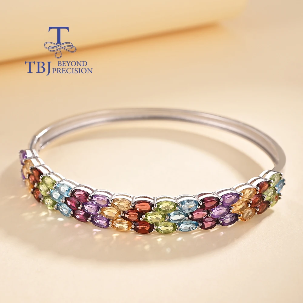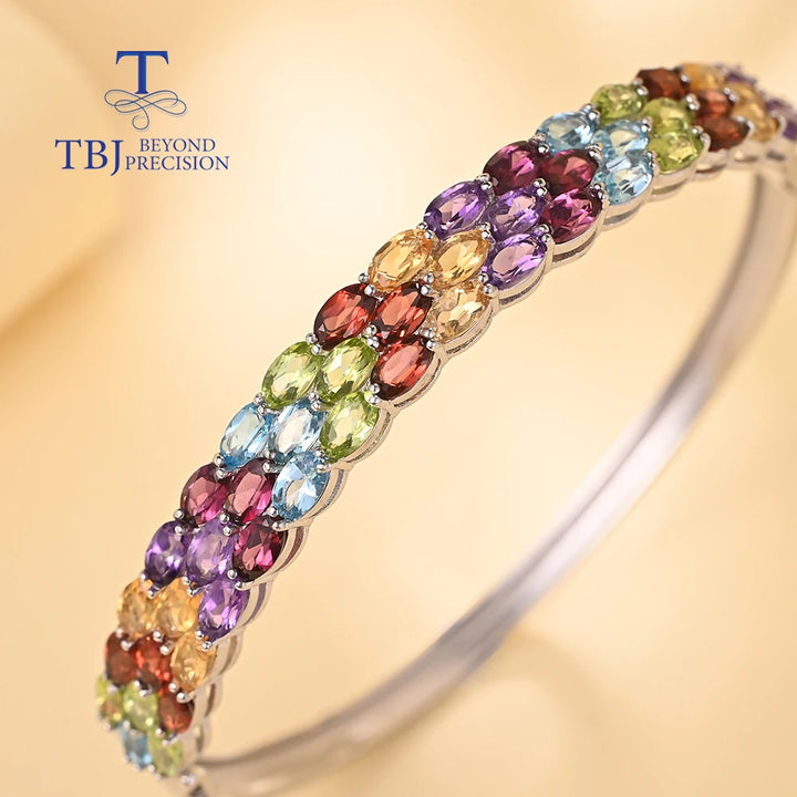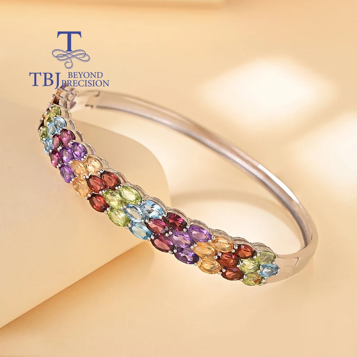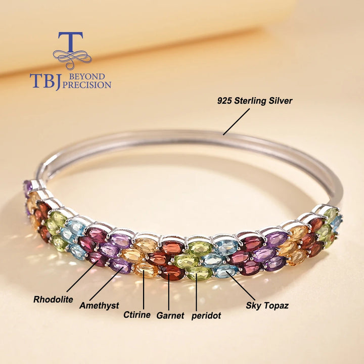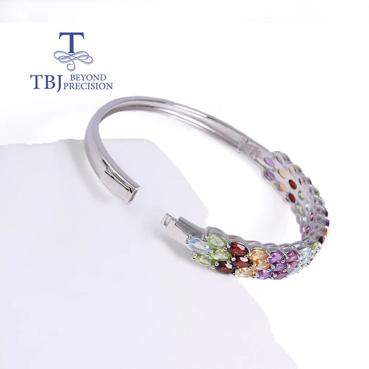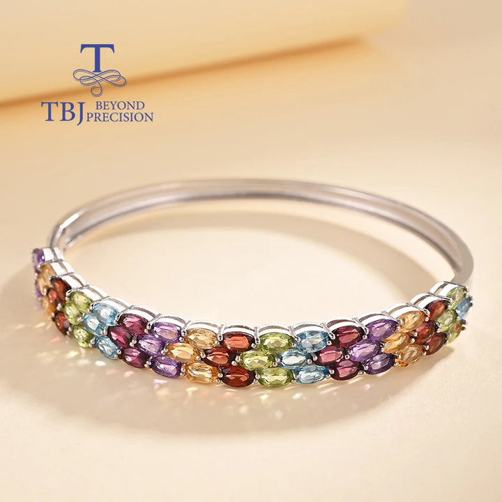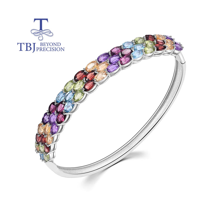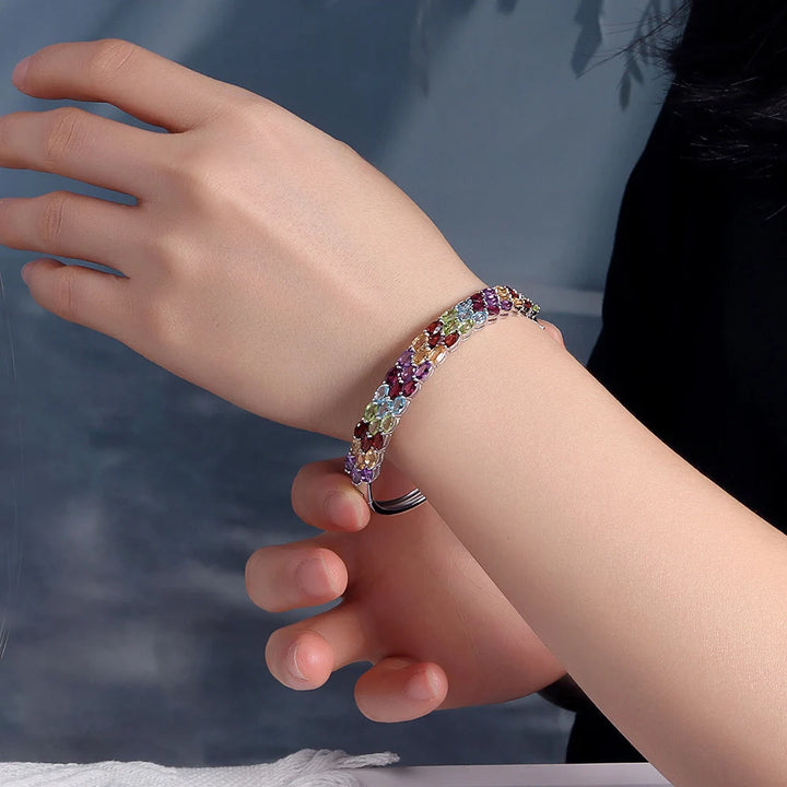 Gorgeous design of natural multi-colored gemstones Ladies Bangle 925 sterling silver fine jewelry Anniversary banquet gift