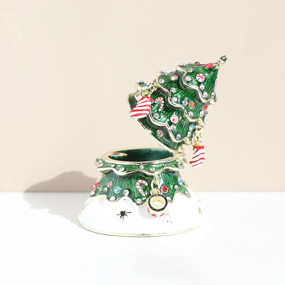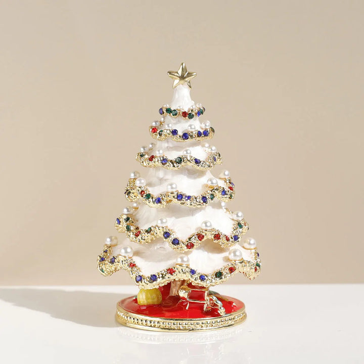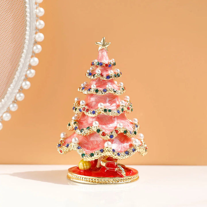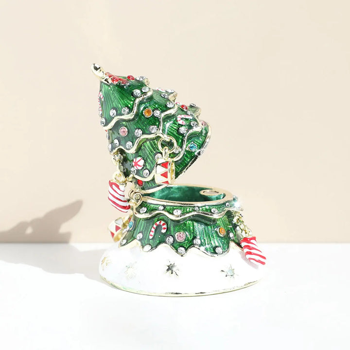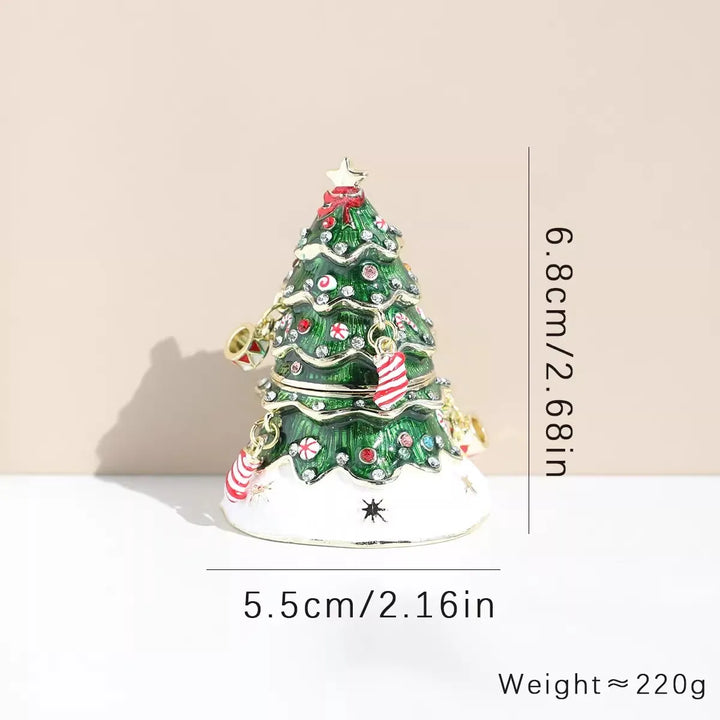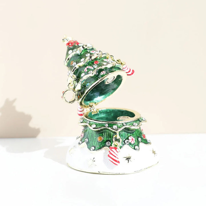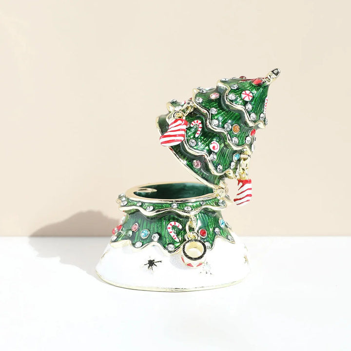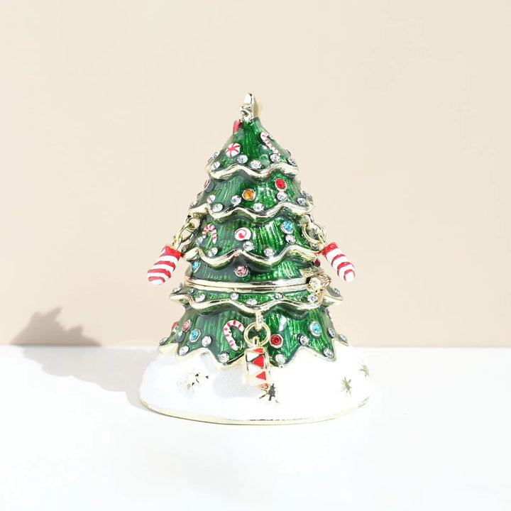 Hand Painted Enameled Christmas Tree Decorative Hinged Jewelry Trinket Box Unique Gift For Home Decor