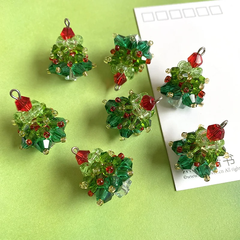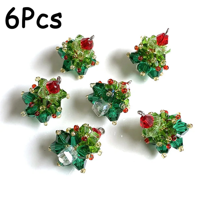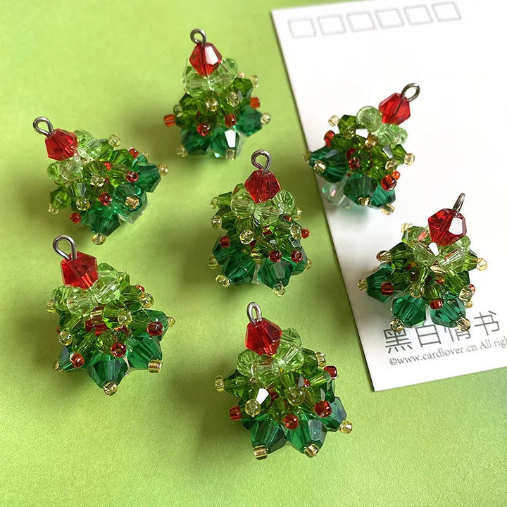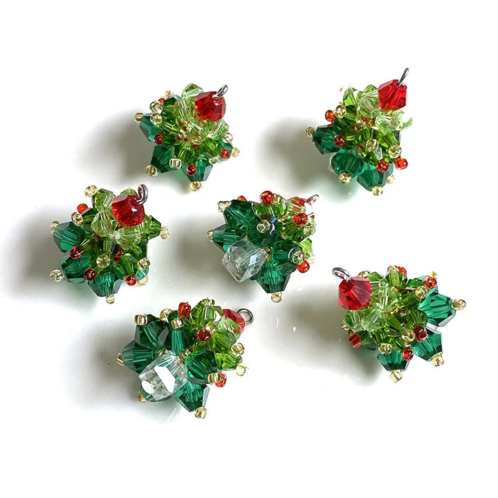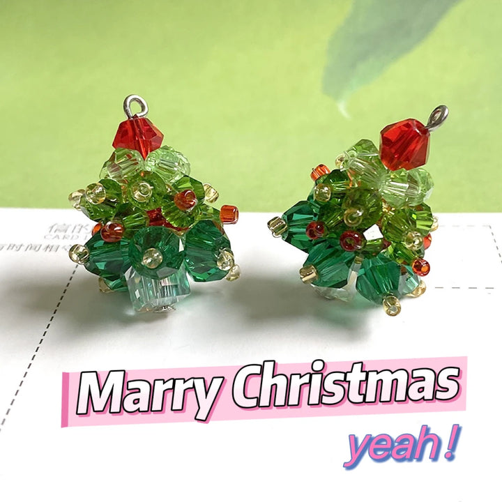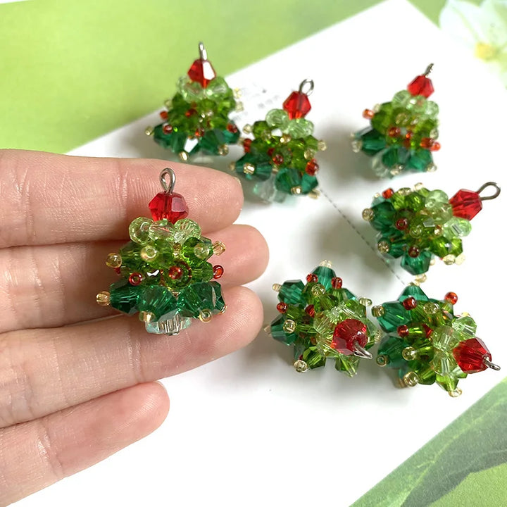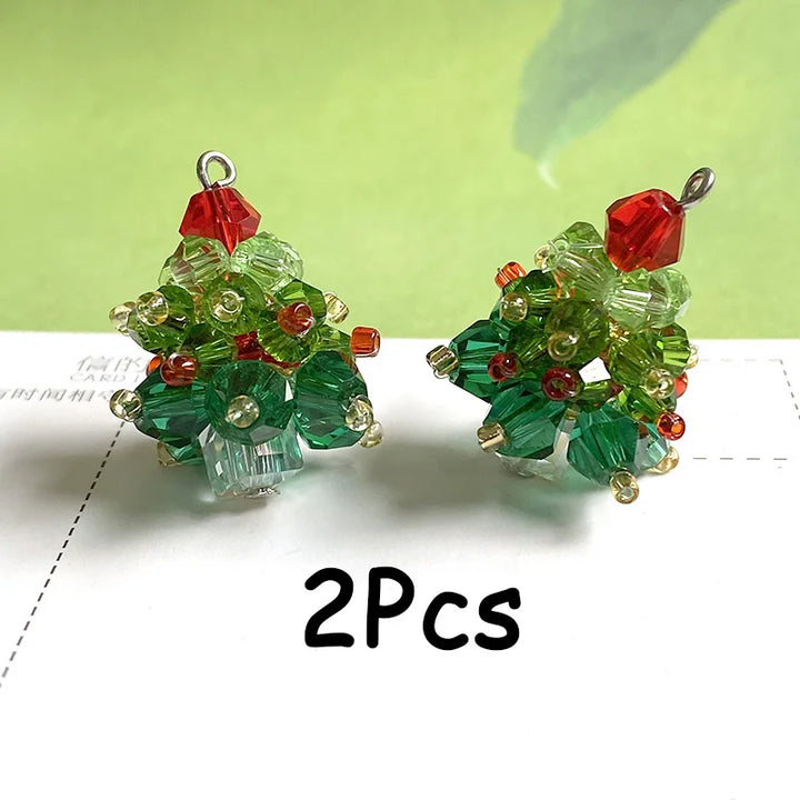 Handmade Woven Christmas Tree Crystal Glass Charms Marry Christmas Earring Necklace Pendant Diy Jewelry Make