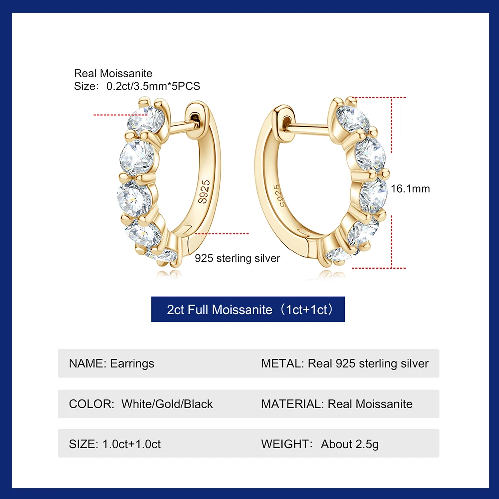 Hoops 3.5mm Moissanite Earring For Women 925 Sterling Sliver Plated 18k Gold Loop Earrings High Quality Jewelry Anniversary Gift